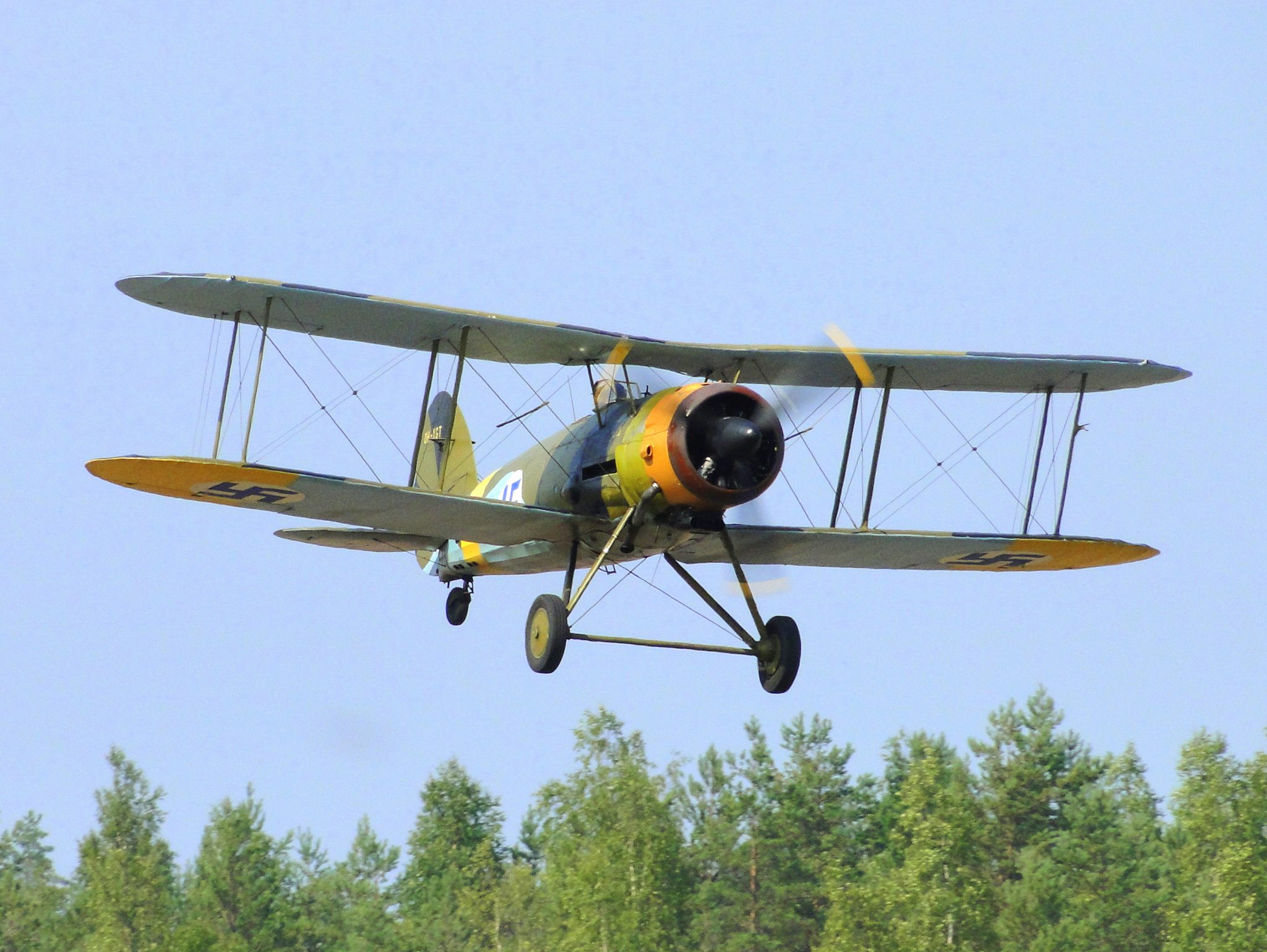 The Royal Norwegian Historic Squadron will field a pair of de Havilland Vampires finished in Finnish Air Force livery who will perform a formation flight with a Finnish Air Force Fouga Magister and a Gloster Gauntlet Mk II, the sole surviving plane of its type. The formation is the first time planes of this type have flown together since the 1960s. Each of the formation participants will also perform an aerobatic display, with the Vampires performing as a choreographed pair.