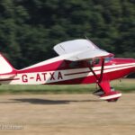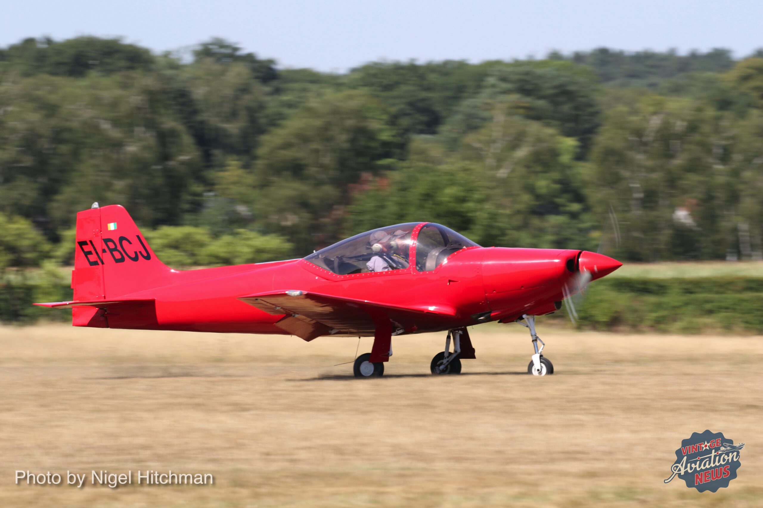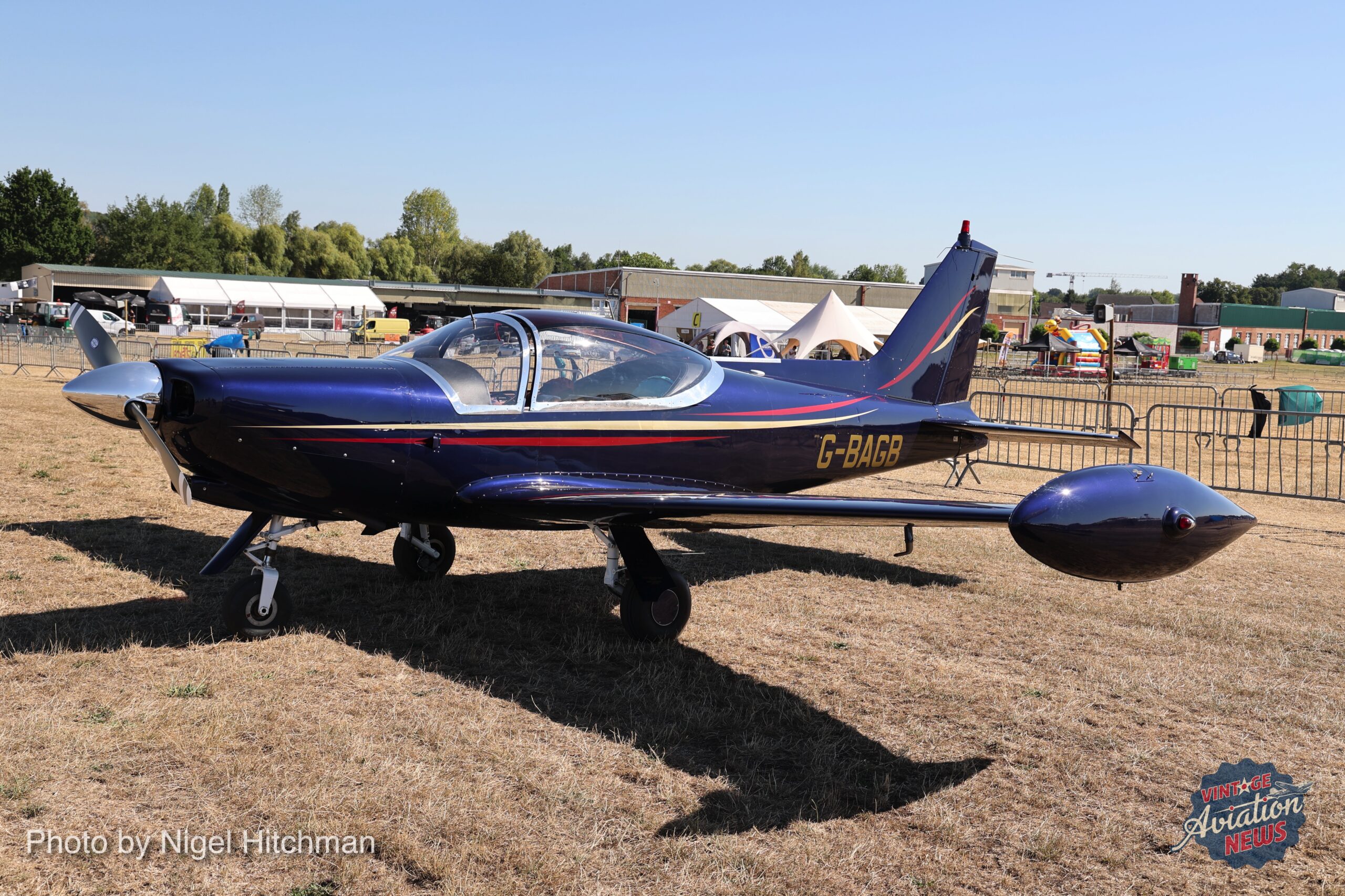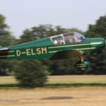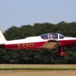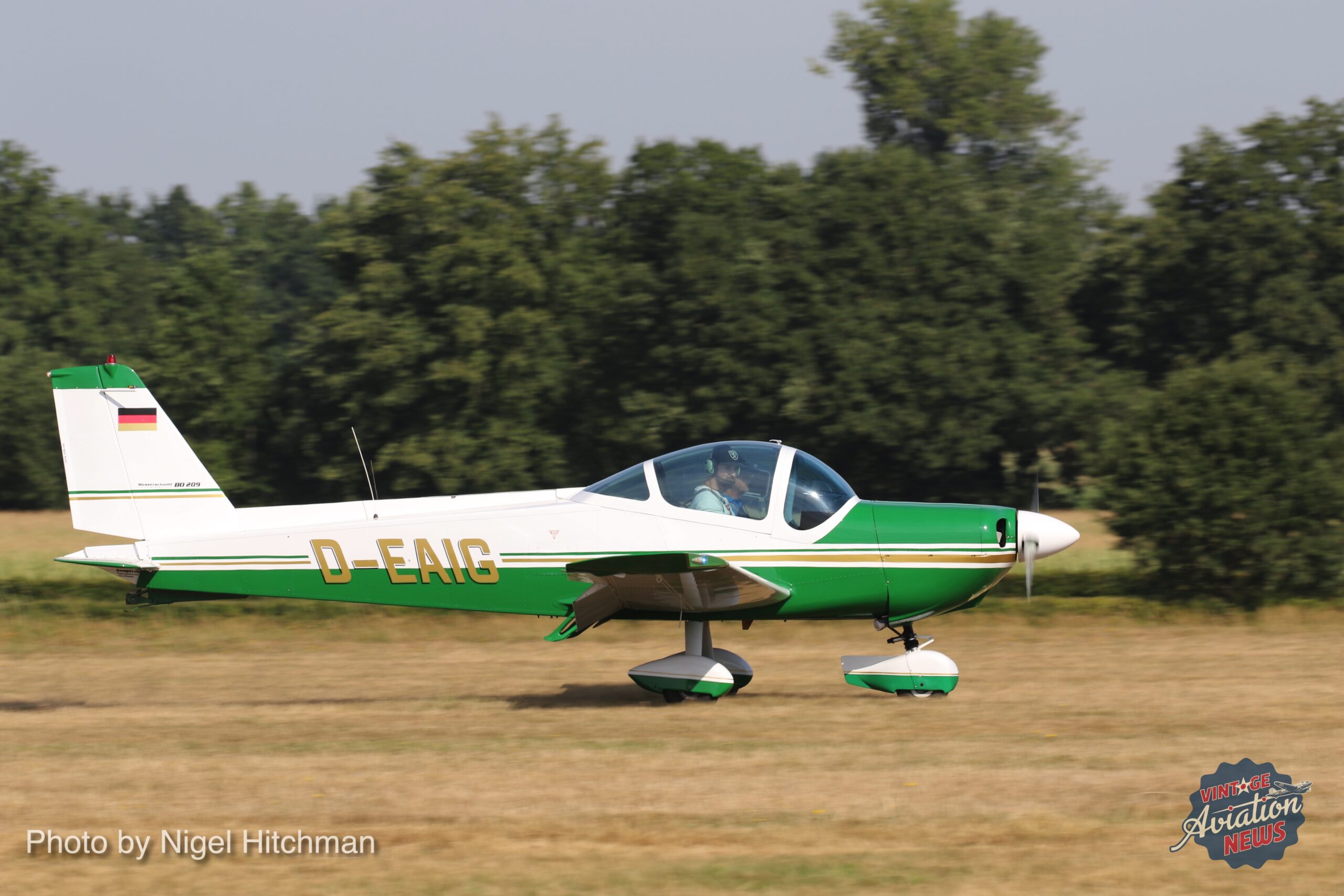 A Swedish-built SAAB 91D Safir (G-XCID) also took part in the fly-in. The Safir’s designer, Anders J. Andersson, had worked for the German manufacturer, Bücker, earlier in his career, so its not too surprising that the type bears a strong resemblance to the WWII-era Bücker Bü 181 Bestmann. Early production Safirs (dating from 1946) were built as three-seaters powered by a DH Gipsy Major 10, however the next model, the 91B featured a Lycoming O-435 engine. The type’s final development, the 91D, was four-seater driven by a 180hp Lycoming O-360.