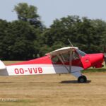 The highlight for many was the first appearance of de Havilland DH.90 Dragonfly G-AEDU, now under the ownership of Shipping and Airlines Ltd. at Biggin Hill in England. They also brought their Miles M38 Messenger 4B (GAKVZ) which joined Peter Bishop’s Messenger 2A, G-AJWB. The Belgian designed Stampe biplane always features heavily at Schaffen-Diest, with roughly ten examples coming this year, plus three or four of the new aluminium tube ultralight replicas powered by rotax 912 engines; they are full sized and bear a reasonably convincing likeness to the originals, although I doubt their handling is as nice. There are many Piper Cubs based in Europe, be they left over WWII L-4s (which were used by many aeroclubs from the 50s through the 70s), J3s imported for training/pleasure flying, or surviving examples of the many L-18 and L-21 Super Cubs which served in many European military arms during the 50s – so, obviously, many of these turned up at the fly-in too. There is also always a meeting of aeroplane types emanating from the Italian aeronautical engineer, Stelio Frati, although this year only saw three Falcos come, one from Ireland and the German and Norwegian registered examples (both being recent imports to Belgium). That being said, one civilian-owned SF260 came from the UK, while some Belgian Air Force examples put on a short flying display.