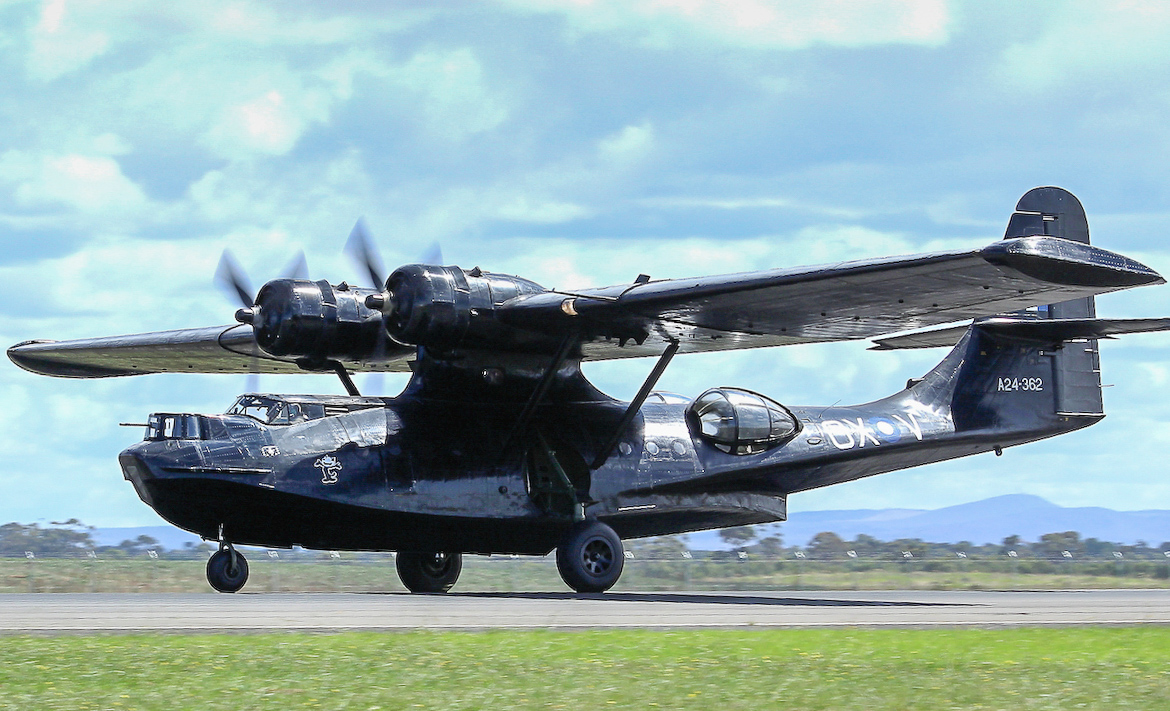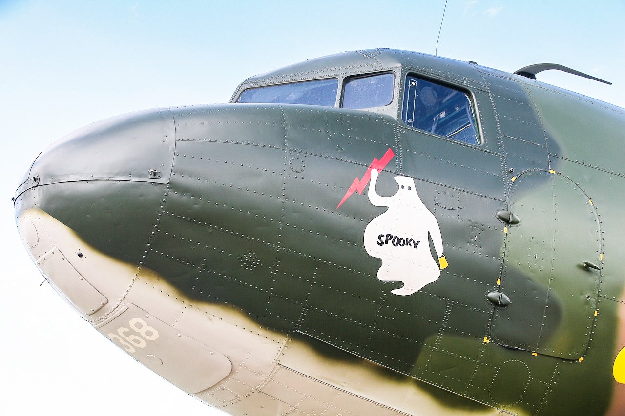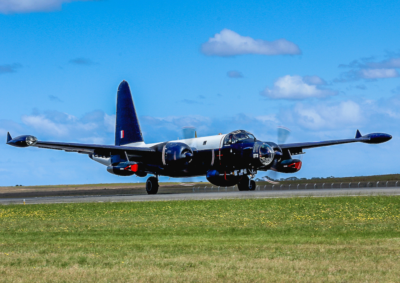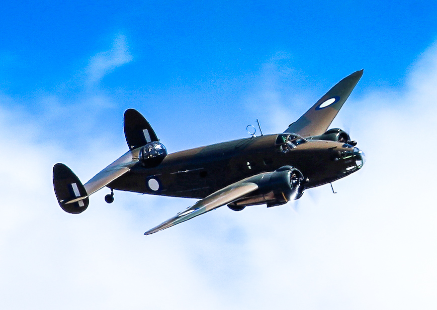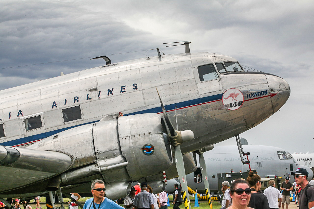 The WWI biplanes were showcased alongside popular WWII warbirds such as the Temora-based Spitfire VIII, Jeff Trappett’s CAC Mustang and Alan Arthur’s P-40 Kittyhawk, all of which did high speed fly-bys and formation passes for the crowd. Joining the famous trio were a few C-47/DC-3 transports in civil and military colours. A head turner and rarely seen in public was Jeff Trappett’s C-47 Dakota marked as a USAF AC-47D “Spooky” gunship of the Vietnam era. The ominous looking “Spooky” contrasted sharply with the shiny silver and high gloss paint schemes on the two DC-3 civil airliners which fly around Melbourne and Victoria on charter flights. The Temora-based Lockheed Hudson, the sole airworthy example in the world, also flew… recounting the dark days of early WWII when the Hudson was the only RAAF bomber type available in the Pacific Theatre.