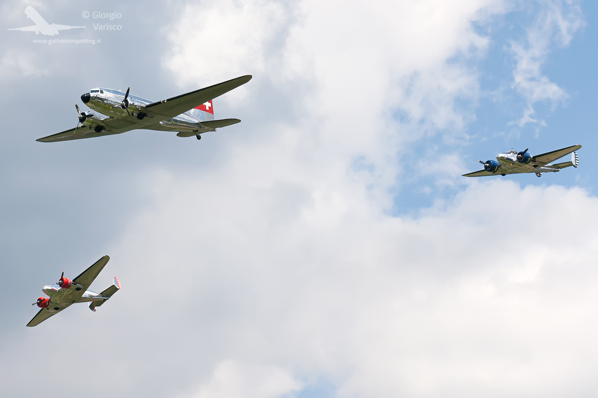 Classic Formation opened the show with their stunning Swissair Douglas DC-3(C) and two bare-metal Beech D18S, which returned in the afternoon for a formation fly-by.