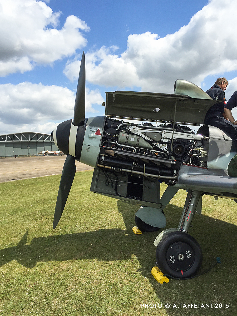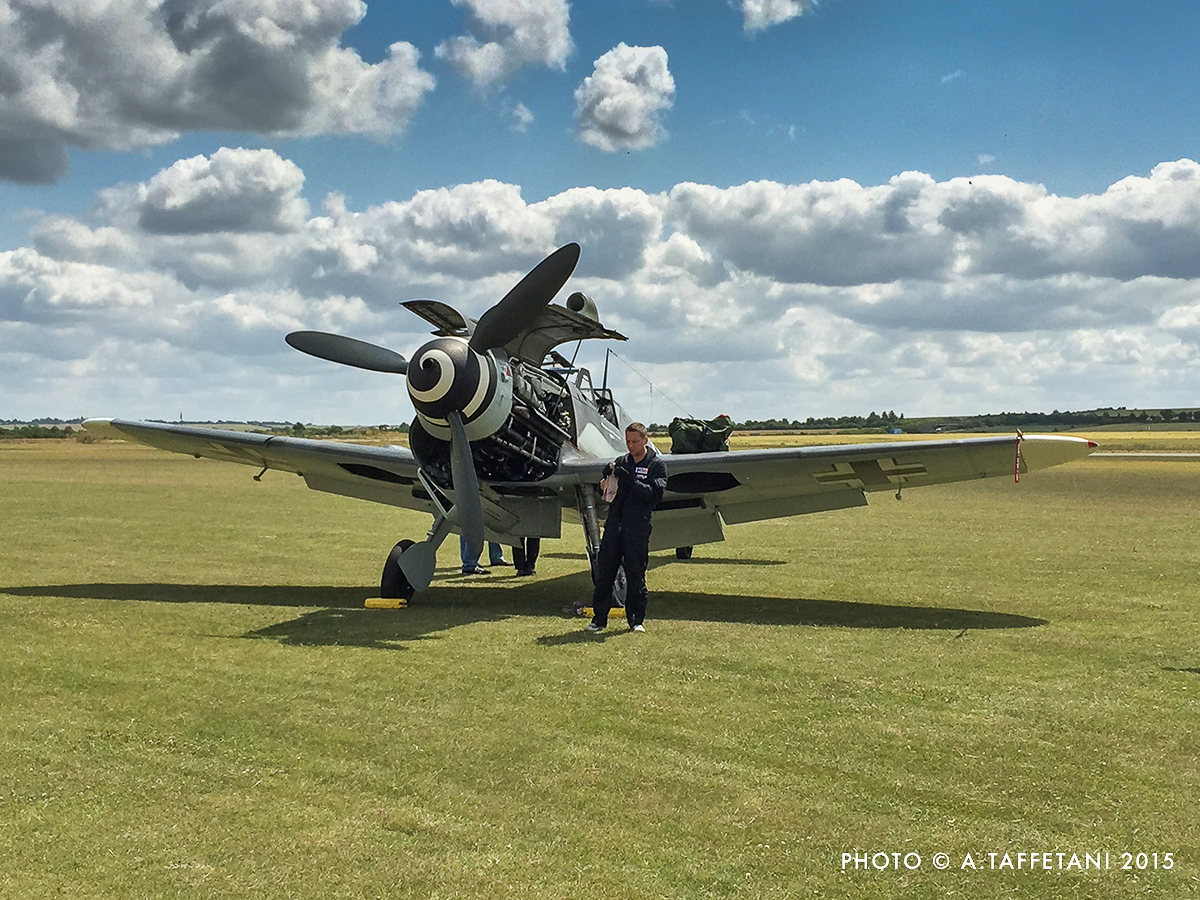 Meeting a pilot who has experience on 109s, Buchons and Fw 190s is great, but meeting two together and listening to them exchanging impressions is just priceless! Hinton and Plasa agreed on the fact that each of the Fw 190s they have tried (mostly Flugwerk replicas) was very different from one another, but that they were not as challenging as flying the Bf 109G or Buchon, as the landing gear geometry of the Messerschmitt design is more closely-coupled and demands particular care. Interestingly Plasa pointed out that the really challenging moment is at takeoff, when the 109 seems to go in a different direction every time! Things are considerably better with the Me 109E according to Hinton; the behavior of which is much more docile and akin to a Curtiss P-40.