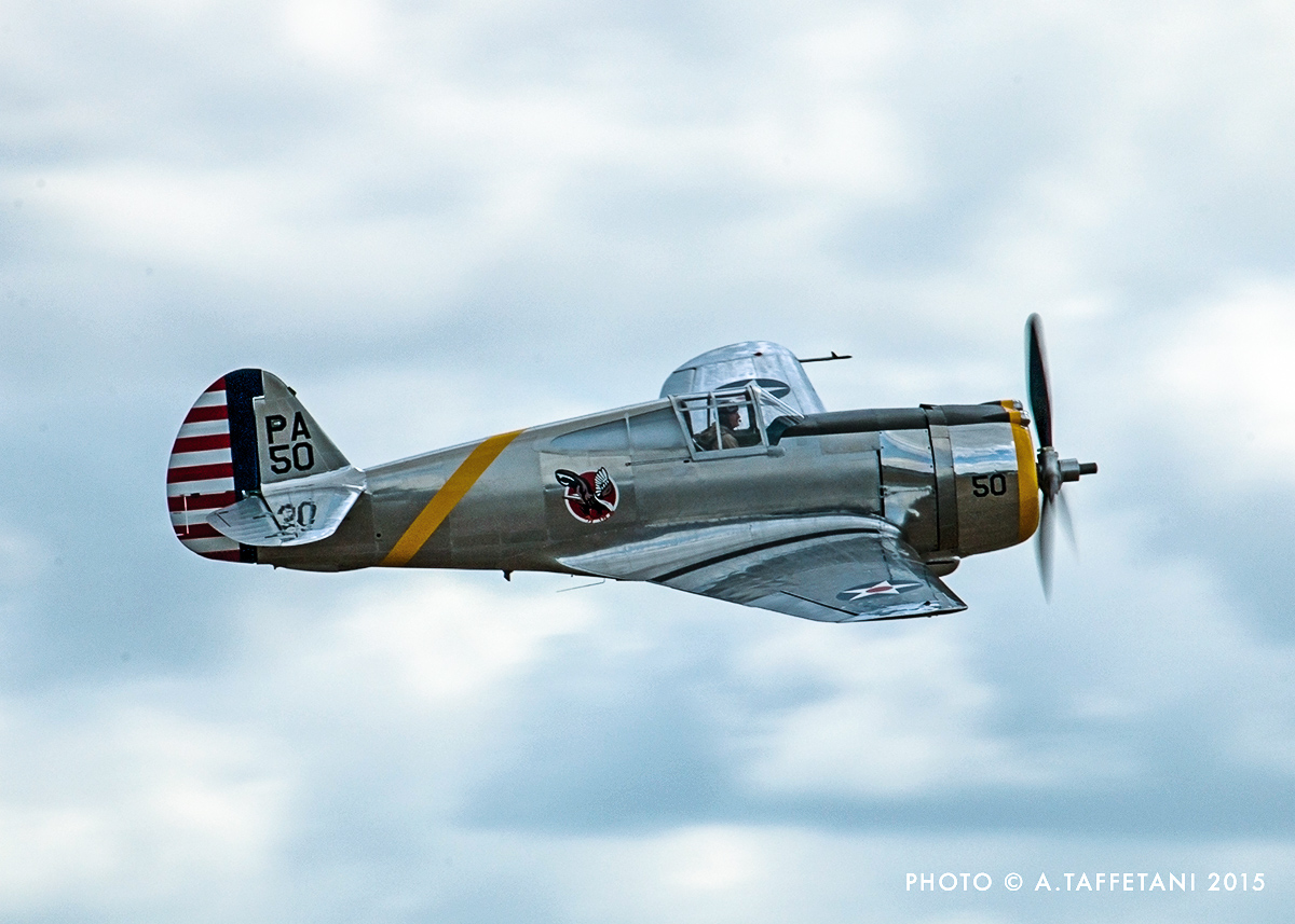 A new entry from The Fighter Collection was the freshly-restored Curtiss P-36, a unique airworthy example, which gleamed in the sun and joined TFC’s Curtiss Hawk 75, P-40C and P-40F in a superb display.