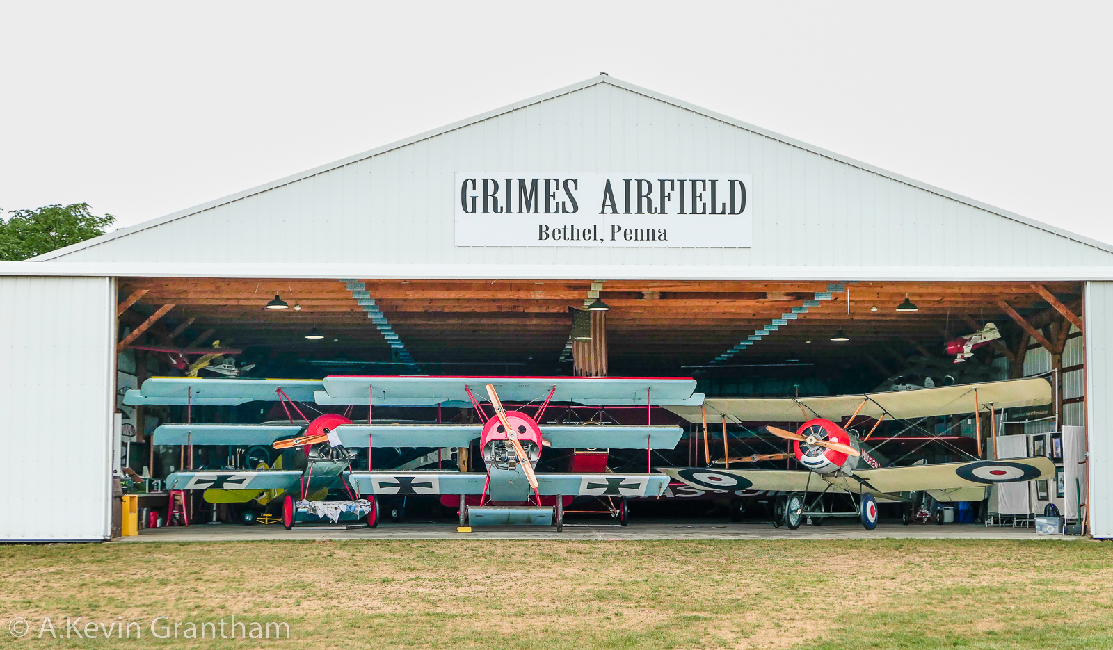 Grimes Airfield, it’s main hangar stuffed with Fokkers. (photo by A. Kevin Grantham)