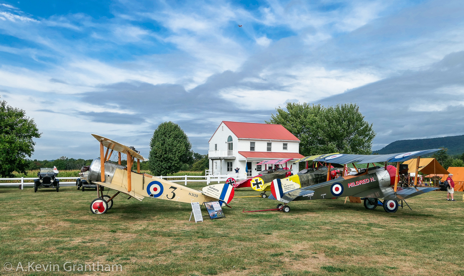 The Fokker Scourge was indeed a fantastic two-day show. Each day they would demonstrate their vintage aircraft collection with comedy scenes in between. The flying was outstanding, but the comedy is what made it all work. I cannot remember when I had more fun at an air show! The whole event had a distinctively family-friendly atmosphere. You can bring your drinks and food and sit down and enjoy the show without being pushed to pay for everything, including the grass you are walking on. Refreshing!!! The adult admission price was only $12 – another nice surprise. The free parking area was behind Grimes Field (it actually comprised the driveway to Paul Dougherty’s house) which is only a hop-skip and a jump to the event area. The museum itself consists of three hangars and a vintage farmhouse which serves as the Museum’s visitor center. The adjoining airfield is bordered by cornfields, giving the site a real Field of Dreams vibe. A very picturesque setting nestled between Interstate 78 and the Blue Mountains of Pennsylvania. The Fokker Scourge was saved for the end of each show, as one might expect. The pictures, with their captions, should serve as an effective guide to the proceedings… enjoy!