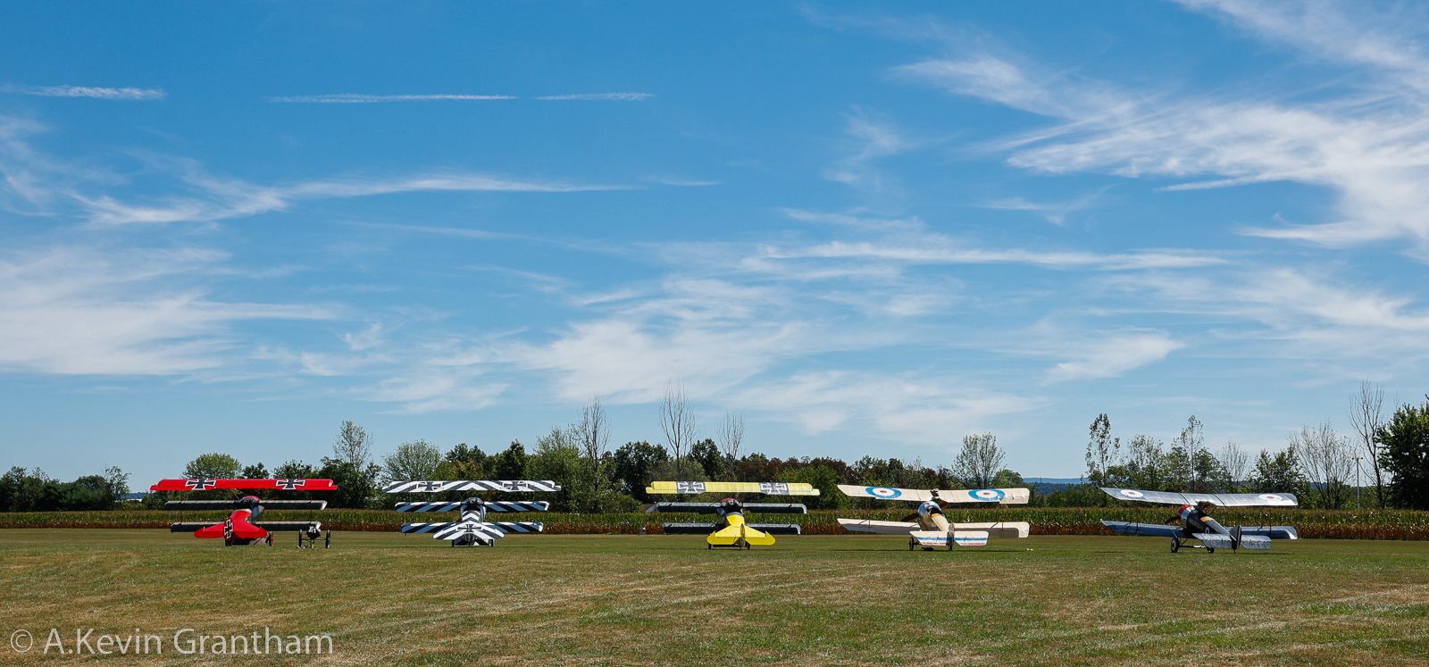 Three Fokker Dr.I’s and a brace of Pups. (photo by A. Kevin Grantham)