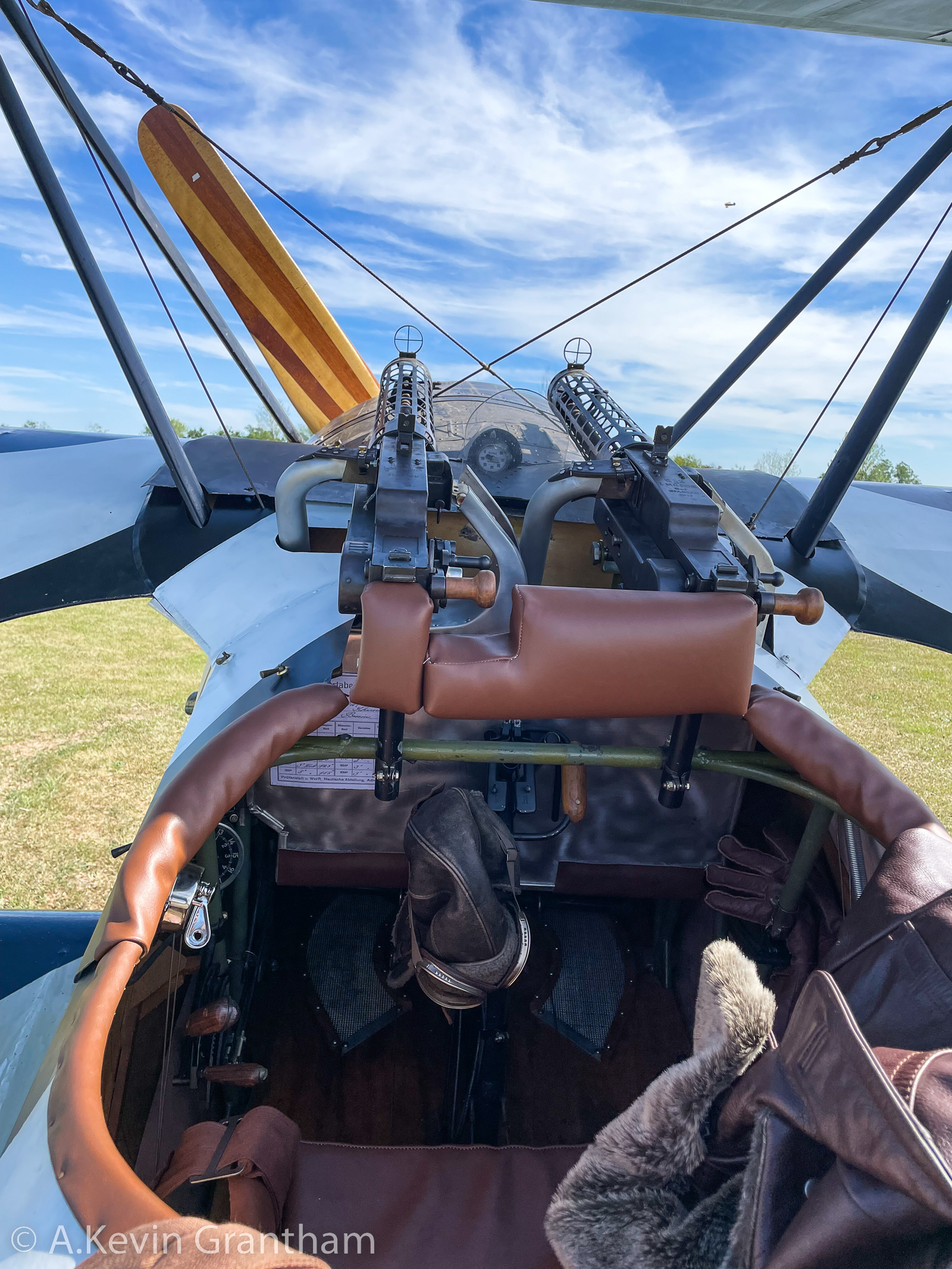 The primitive cockpit of Chris Hall’s beautiful Zebra Triplane. (photo by A. Kevin Grantham)