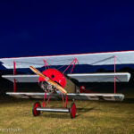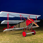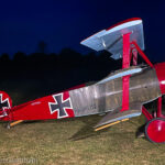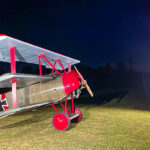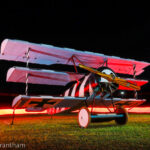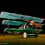 A couple of weeks ago we published a story by Aaron Haase describing the Golden Age Air Museum’s marvelous annual air show, themed as the Fokker Scourge due to the four replica Fokker Dr.I triplanes participating in the flying display. What we didn’t cover in that article were the marvelous nighttime photoshoots featuring illuminated WWI fighter plane designs on the evening prior to each day of the event. Organized by Full Disc Aviation, this experience included a brace of Fokker triplanes along with a replica Sopwith Pup. Our great friend and noted aviation author, A.Kevin Grantham, was on hand to capture the proceedings, so we thought we’d let him pick up the story from here…