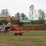 The Sopwith Pup’s tail skid failed shortly after touching down, which ground lopped the plane into an adjacent cornfield. Pilot Mark Mondello was unhurt, and the airplane suffered no damage. The culprit turned out to be a bent pivot bolt. The Pup was quickly repaired and put back into service. (photo by A. Kevin Grantham)