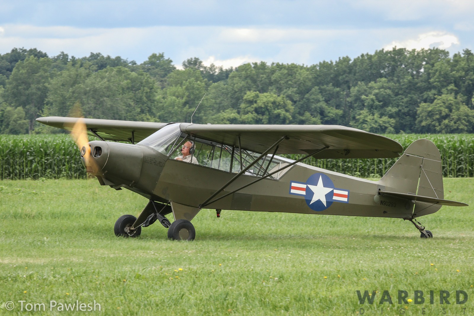 A Wag-Aero CUBy L21B-135 dressed to represent a Piper L-21B Seneca on the grass at Geneseo. (photo by Tom Pawlesh)