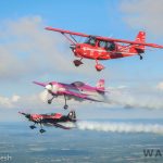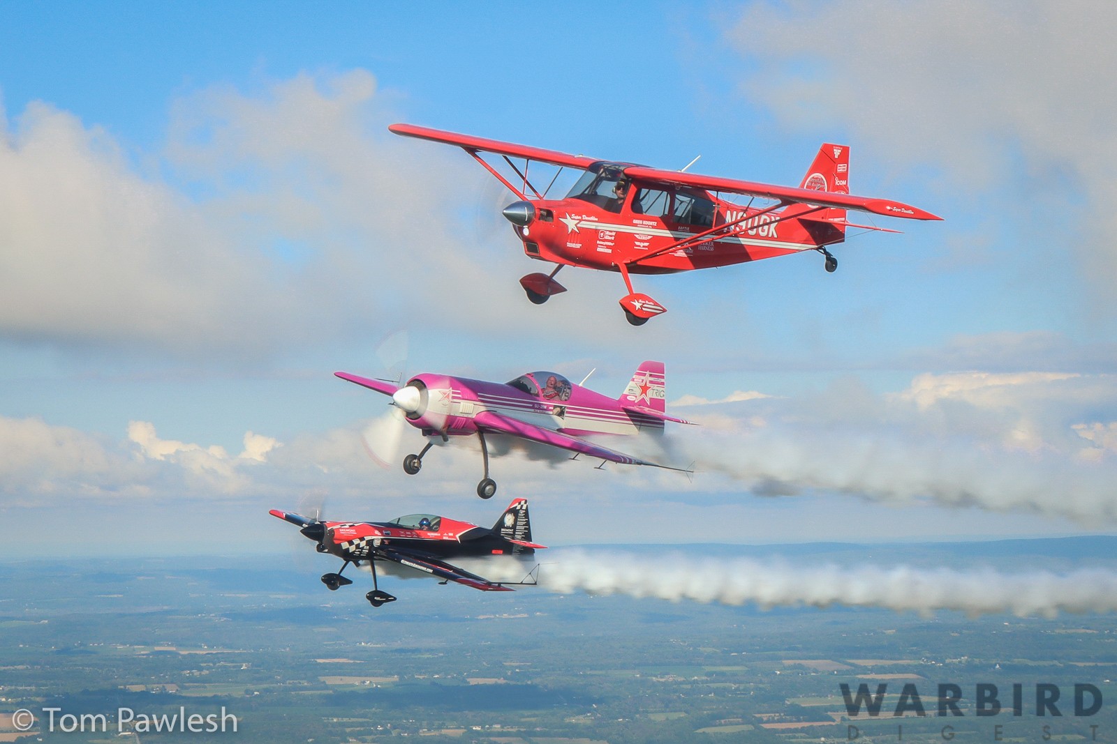 Just the acros – from left to right – Rob Holland in his MXS-RH, Rick Volker in his Sukhoi Su-26M and Greg Koontz in the Super Decathalon. (photo by Tom Pawlesh)