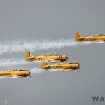 The Canadian Harvard Aircraft Association’s four-ship comprising (from left to right) Harvard 4 RCAF 20422, Harvard Mk.II AJ583, Harvard Mk.II RCAF 3830 and Harvard 4 RCAF 20242. (photo by Tom Pawlesh)