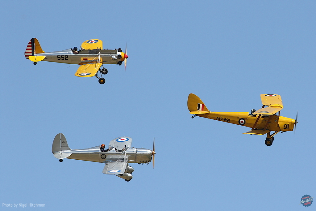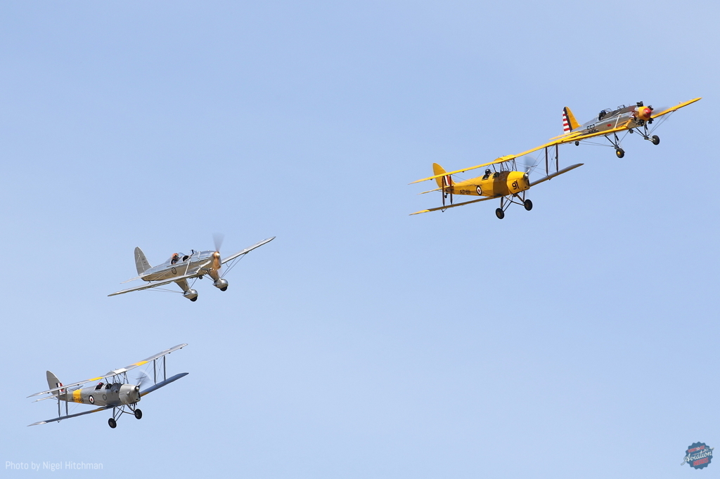 The ‘Tiger Formation’ comprised two Temora-operated de Havilland DH 82 Tiger Moths, VH-UVZ and -CXY, the Temora Ryan STM, and Scott Taberner’s Temora-based Ryan PT-22 VH-RPT. Later, Brett ‘Archie’ Alderton presented a lyrical solo display in DHC Chipmunk VH-CPI.