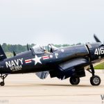 A significant contingent of vintage military aircraft also attended the event. Larry Kelly’s gleaming North American B-25J Mitchell Panchito (44-30734) flew for the crowd, as well as Jim Beasley’s P-51D Mustang Bald Eagle (44-73029). Beasley is a veteran warbird pilot, and his aerial display clearly showed why the Mustang is considered as one of the best fighters to see service in World War II. The Class of ‘45 air show segment featured Scott “Scooter” Yoak in P-51D Mustang Quicksilver (45-11439) and Jim Tobul in Vought F4U-4 Corsair Korean War Hero (Bu.97143). Yoak and Jim Tobul sped over the airfield in a joint routine, simulating ground attack maneuvers, highlighted by pyrotechnic explosions. The Commemorative Air Force’s Red Tail Squadron’s P-51C Tuskegee Airman rounded out the group of warbirds flying in the show. As most readers will known, this particular aircraft is a flying memorial to the often-overlooked history of the Tuskegee Airmen who flew the same type of fighter in World War II.