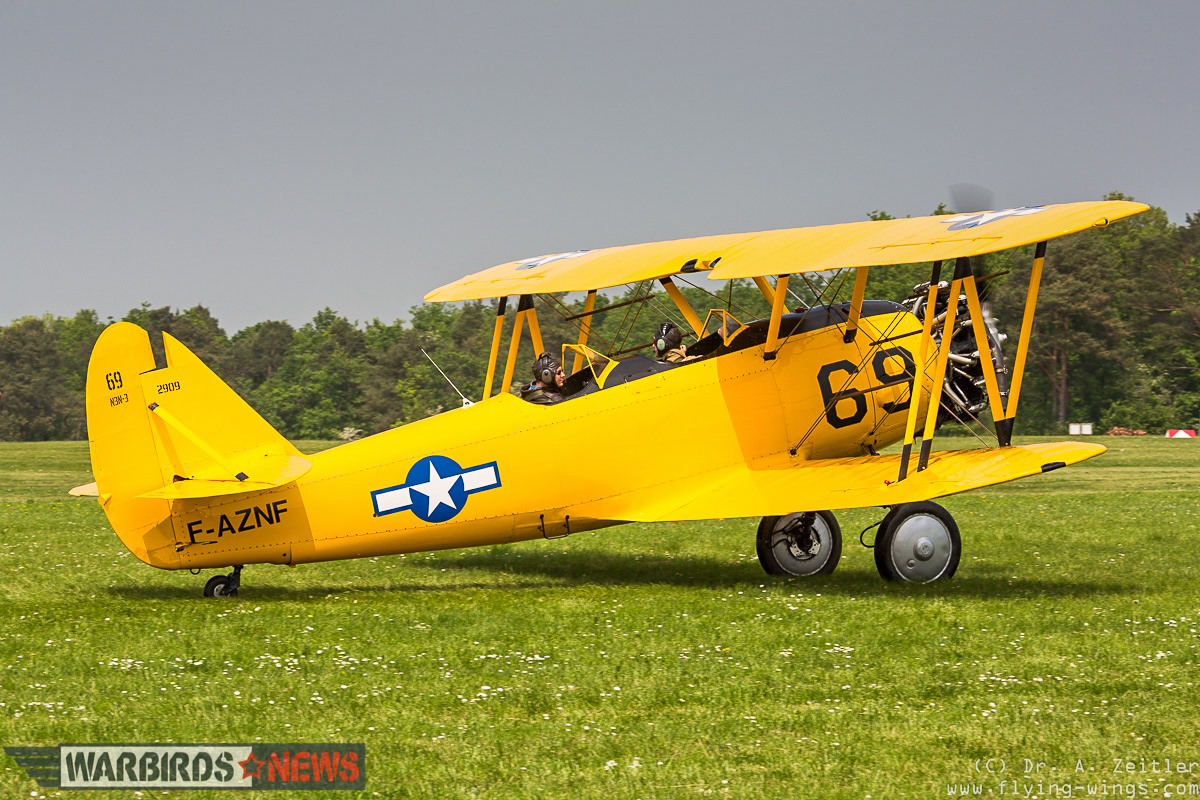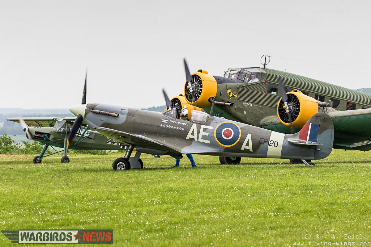 France’s premier air show is held each year at Cerny aerodrome, close to the picturesque town of La Ferté-Alais, just a short distance from Paris. On clear days you can see the Eiffel tower from the plateau where this French vintage aviation haven lies. The event itself takes place during the weekend of Pentecost, fifty days after Easter, and thus the date for any given year varies between mid-May and mid-June. This year the “Le temps des helices”, or “The time of propellers” as the show is affectionately known, took place over the weekend of May 14th/15th. However, the weather felt more like April and clearly challenged the organizers. Temperatures were decidedly chilly at around 10°C (50°F) and a northern crosswind over the runway, blasted straight into visitors’ faces along the fence line. On the Friday practice show, thunderstorms made an appearance, with rain, and even a little hail peppering the airfield. These inclement weather conditions unfortunately prevented the attendance of some participants further afield. The Swiss-based TBM-3 Avenger and Morane MS.406 were two such much-missed warbirds this year, especially as the announced naval Avenger/Catalina and French MS.406/Hawk 75 formations had received significant billing. Thankfully, The Fighter Collection’s Duxford-based Curtiss Hawk 75 and Spitfire Mk.V arrived several days earlier, wisely choosing the more favorable weather conditions available at that time. Fortunately the storms stayed away over the weekend, but the damage had already been done as the airfield’s grass runway was already sodden from previous days of rain. This further hampered flight operations for the heavier aircraft. As an example, Christophe Jacquard’s Hawker Fury and Douglas Skyraider arrived from the southern France after Saturday’s flying display ended, but the pilot’s elected not to fly on Sunday because of the precarious runway conditions.