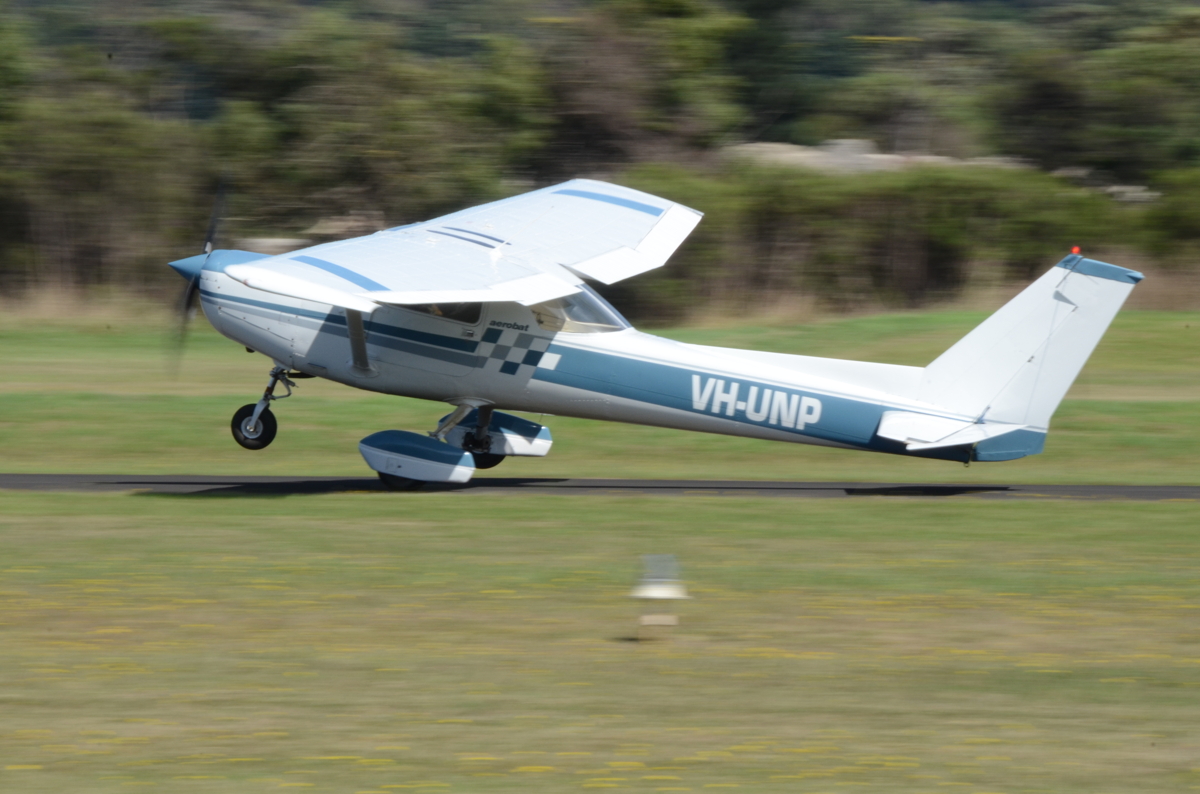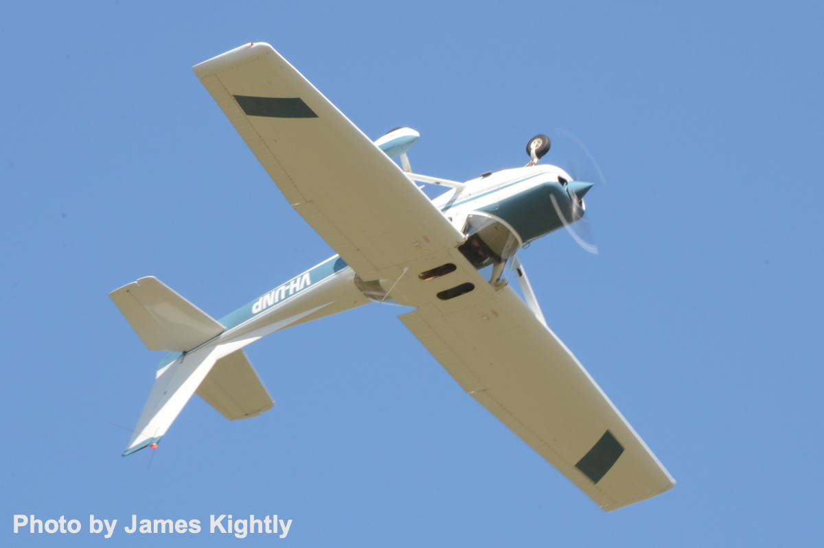 A venerable Cessna A152 Aerobat showing the reason for its name, and demonstrating to the general public how even ‘little’ planes can do amazing things. [Photo by James Kightly]