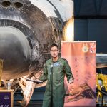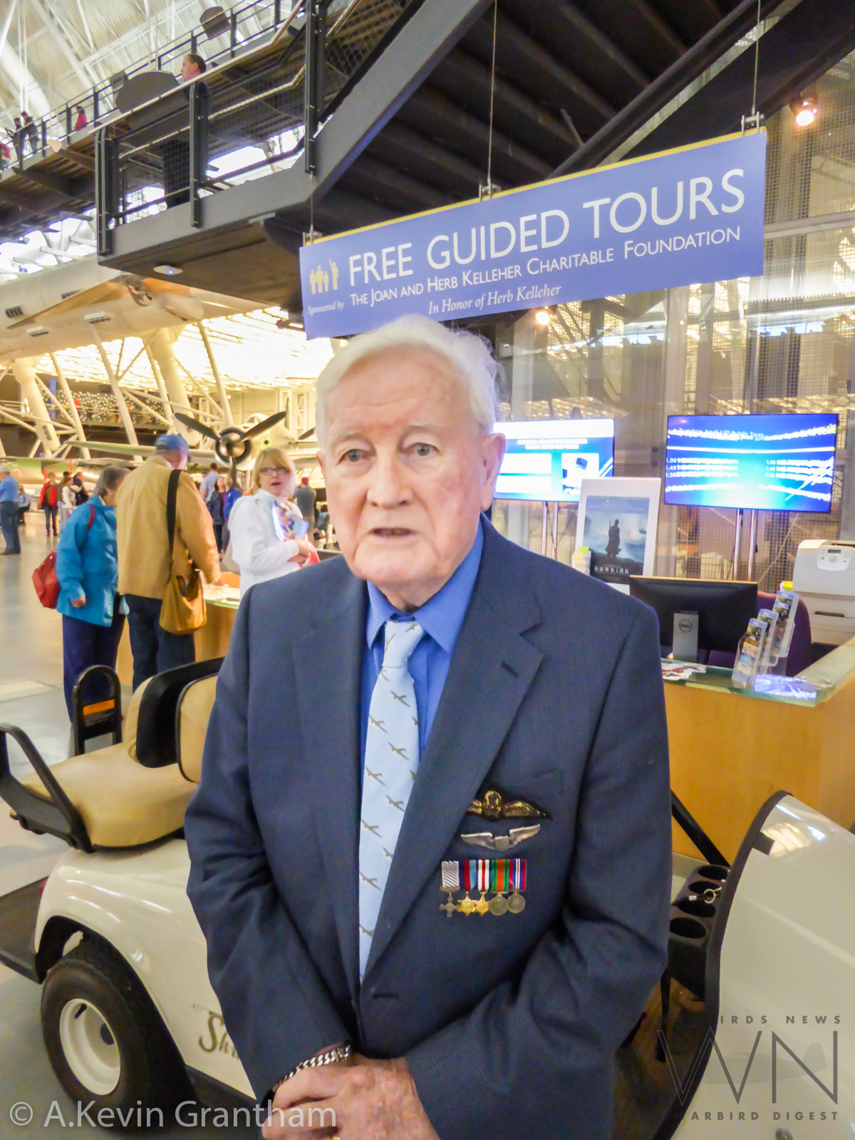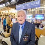 96-year old RAF Lancaster bomber pilot Flight Lieutenant Richard Boyd DFC was on hand at the Great British Fly-in to talk about his experiences during WWII. (photo by A.Kevin Grantham)The Royal Air Force Band playing inside the National Air & Space Museum’s Steven F. Udvar-Hazy Center during the Great British Fly-in to celebrate the RAF’s Centenary. (photo by A.Kevin Grantham)