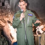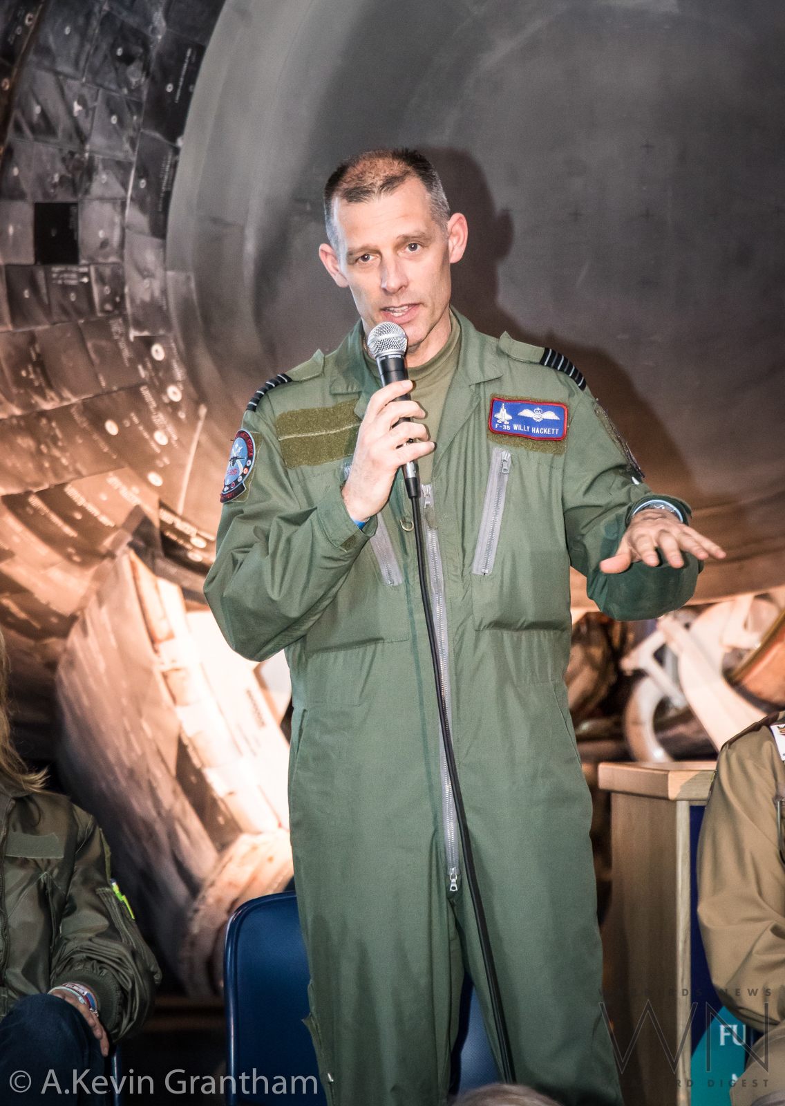 Group Captain Willy Hackett describing test flying the F-35B, which will soon be joining the Royal Air Force. (photo by A.Kevin Grantham)