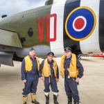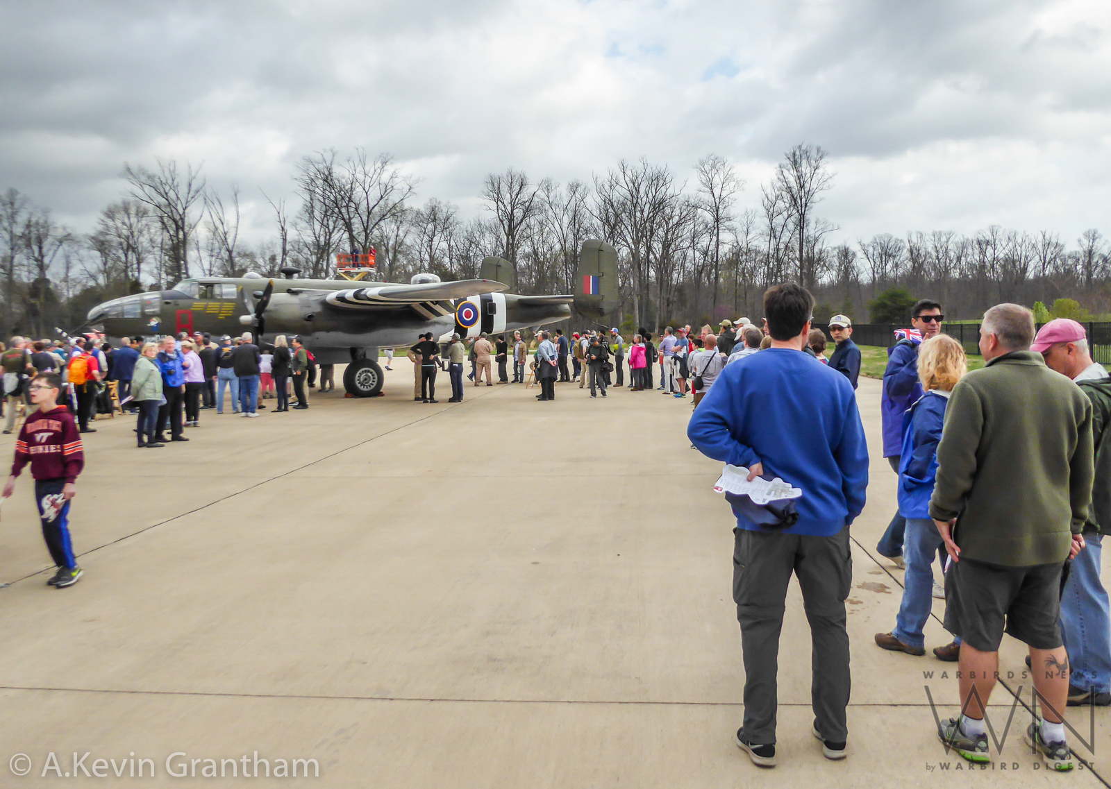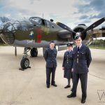 RAF re-enactors standing in front of the Historic Flight Museum’s B-25D Mitchell at the Great British Fly-in outside NASM’s Steven F. Udvar-Hazy Center in Chantilly, Virginia on April 15th, 2018. (photo by A.Kevin Grantham)