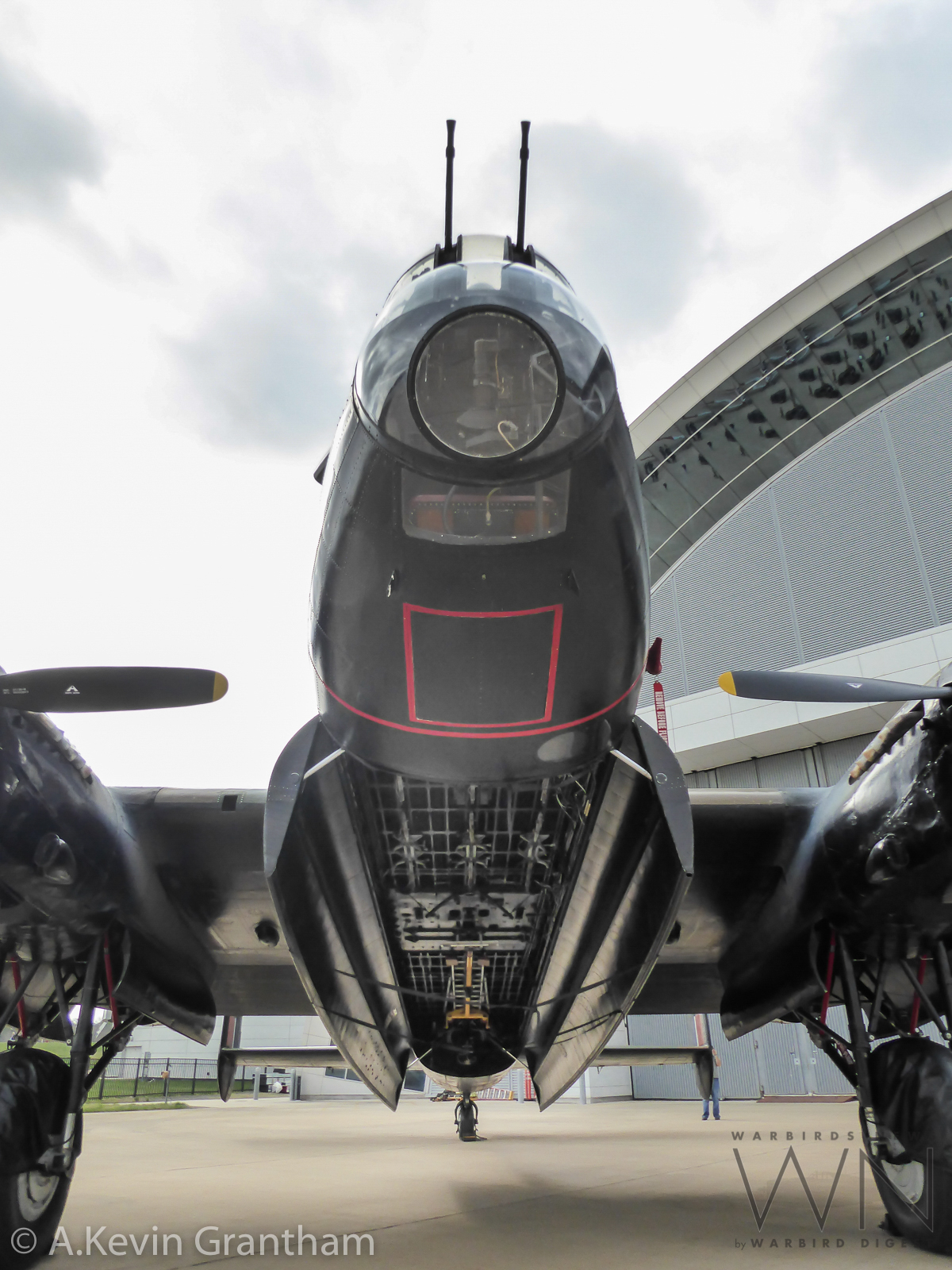 A beautiful shot of the Lancaster outside the Steven F. Udvar-Hazy Center shortly after shutting down her engines following the long flight from her home in Hamilton, Ontario. (photo by A.Kevin Grantham)