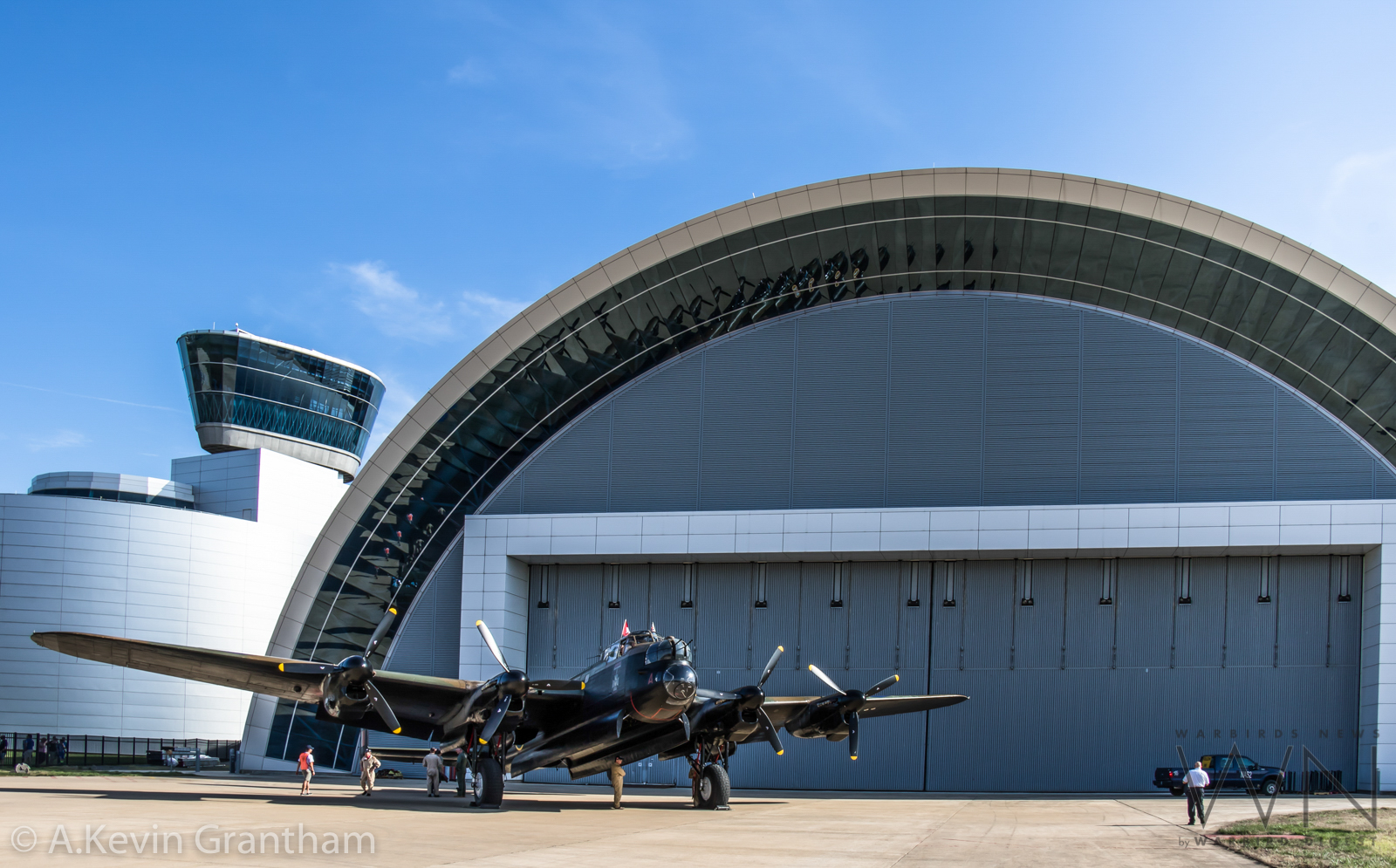 The Canadian Warplane Heritage Museum’s Avro Lancaster on the apron in front of the Udvar-Hazy Center’s main display hangar before the public arrived to take in the show. (photo by A.Kevin Grantham)