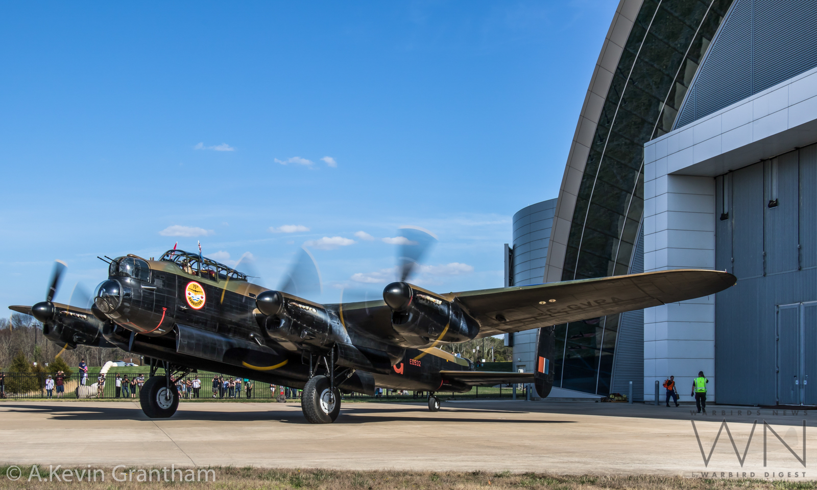 The Lancaster preparing to shut down outside the main display hangar at the Smithsonian’s Steven F. Udvar-Hazy Center. (photo by A.Kevin Grantham)