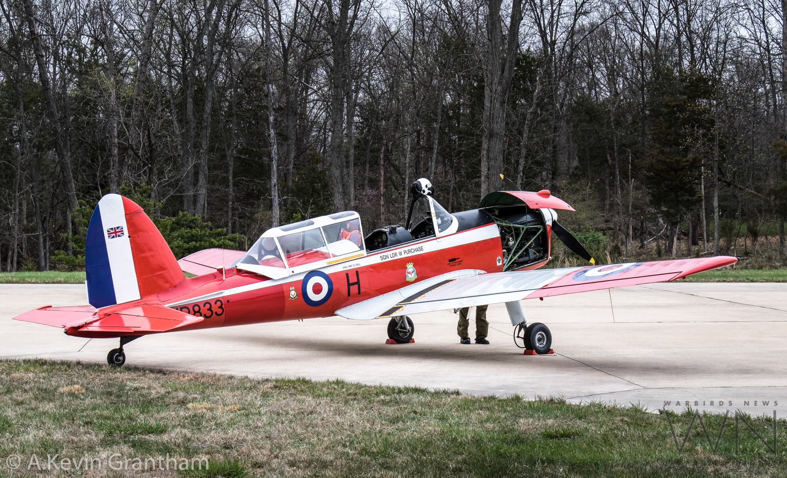 Preparing the deHavilland Chipmunk for departure ahead of the approacing inclement weather. (photo by A.Kevin Grantham)