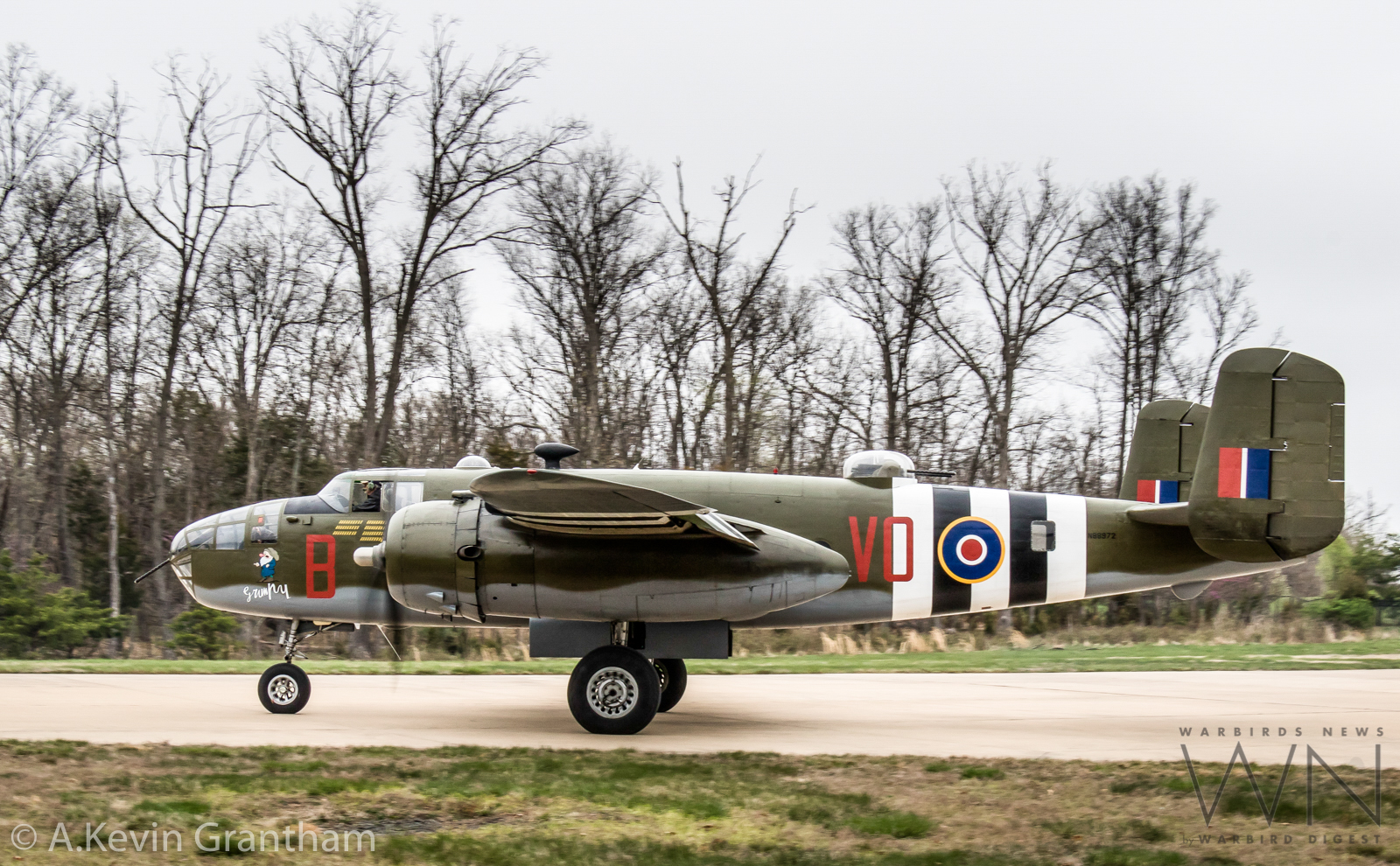 John Session’s taxies in the Historic Flight Museum’s B-25D after landing following a cross-country flight all the way from the museum’s home in Everett, Washington. (photo by A.Kevin Grantham)