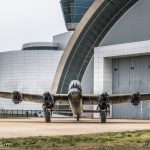 The Canadian Warplane Heritage Museum’s Avro Lancaster FM213 taxiis in to the Udvar-Hazy Center following its journey to the Great British Fly-in from Hamilton, Ontario. (photo by A.Kevin Grantham)