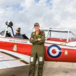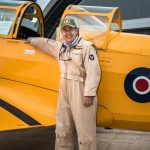 John Sessions poses in front of his Mitchell. Sessions flew Grumpy all the way across the country specifically to be at this event. (photo by A.Kevin Grantham)RAF re-enactors standing in front of the Historic Flight Museum’s B-25D Mitchell at the Great British Fly-in outside NASM’s Steven F. Udvar-Hazy Center in Chantilly, Virginia on April 15th, 2018. (photo by A.Kevin Grantham)The Kaydet and Cornell shortly after arriving at the Great British Fly-in. (photo by A.Kevin Grantham)Richard Wilsher standing proudly in front of his deHavilland Chipmunk. It took two days for Wilsher to fly the Chipmunk in. (photo by A.Kevin Grantham)