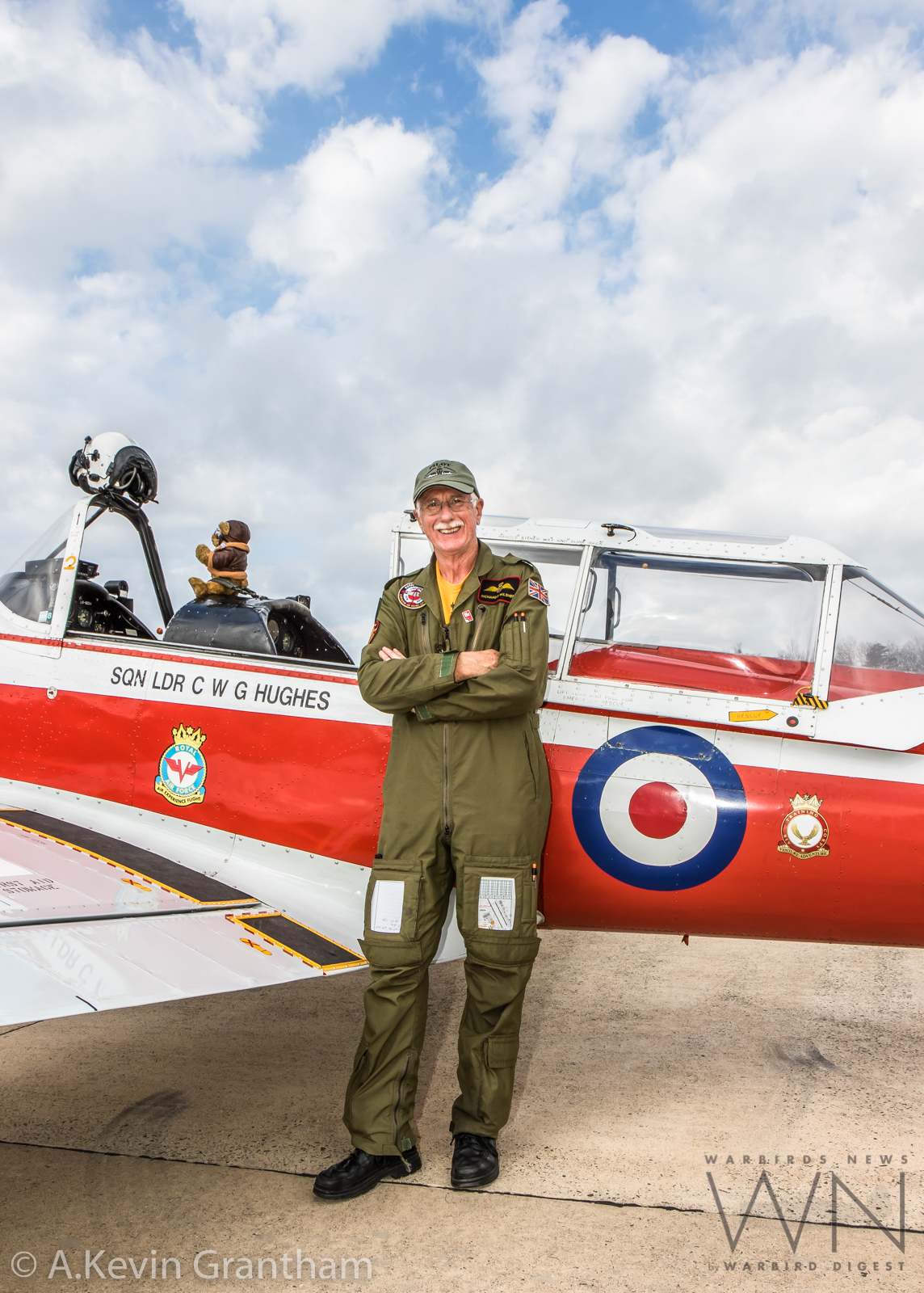Richard Wilsher standing proudly in front of his deHavilland Chipmunk. It took two days for Wilsher to fly the Chipmunk in. (photo by A.Kevin Grantham)
