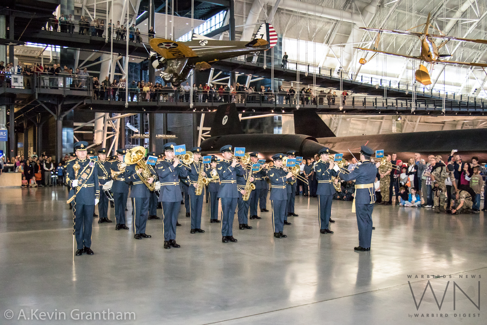 The Royal Air Force Band playing inside the National Air & Space Museum’s Steven F. Udvar-Hazy Center during the Great British Fly-in to celebrate the RAF’s Centenary. (photo by A.Kevin Grantham)