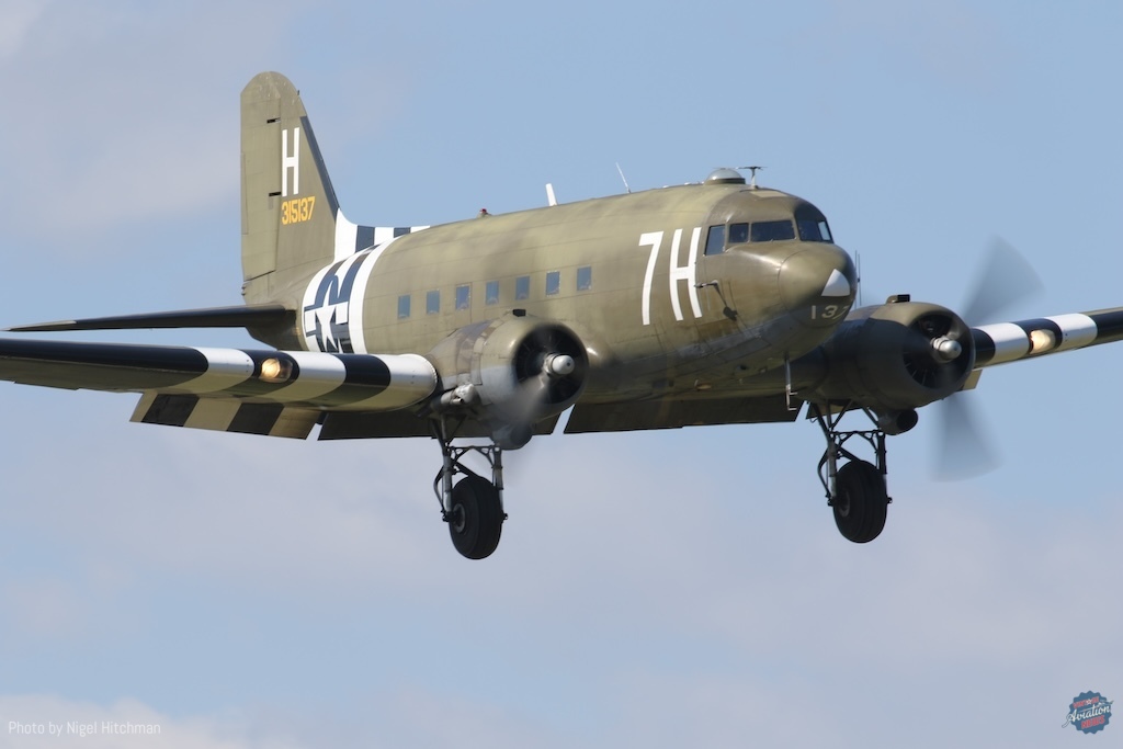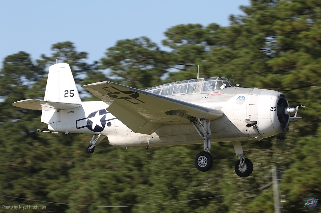 There was a nice selection of warbirds flying, and the location is great for watching the take-offs and landings with the runway fairly close to the crowd and the treeline behind adding to the effect and helping for photographs even though we were looking into the sun. The rest of the display is quite high and distant, presumably because of the houses the other side of the treeline. Visiting display aircraft were The Liberty Foundation’s Douglas C-47 Chalk 40 N99FS which also carried Hurricane relief supplies to North Carolina on its way to and from the show, and Tim Savage bought his Curtiss P40N N740PN Skeeter and his Grumman TBM-3E N4147A was flown in by his son Job who also flew it in the airshow in the US Navy part of the show. All the rest of the show aircraft were those operated by the Military Aviation Museum.