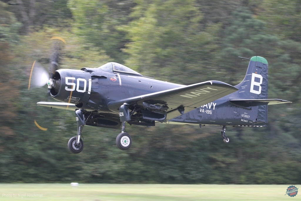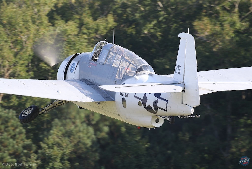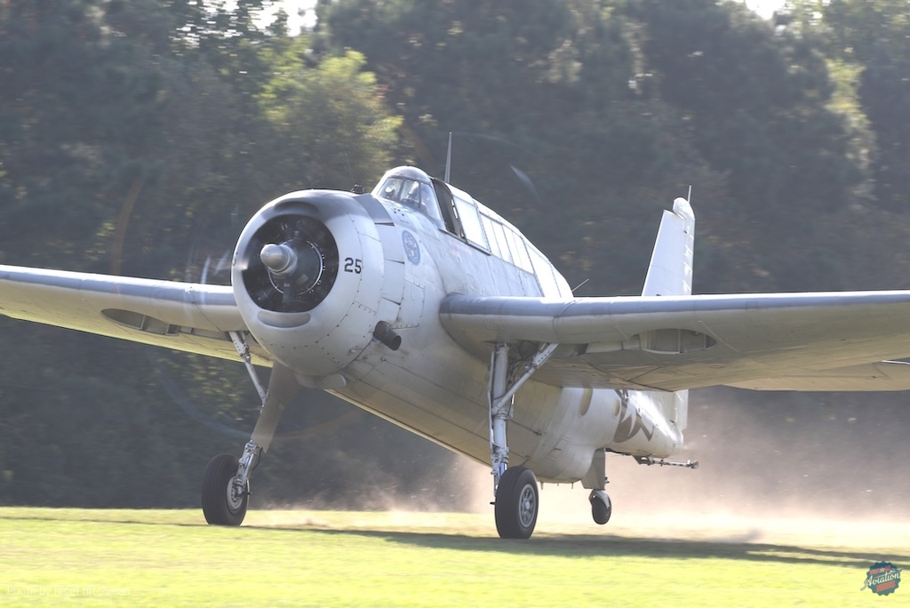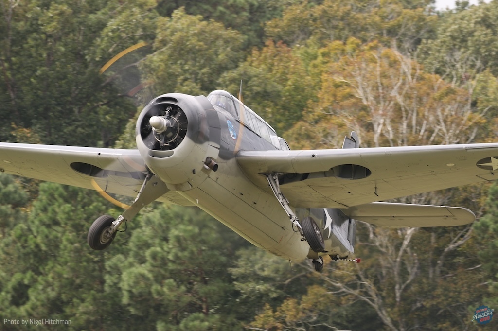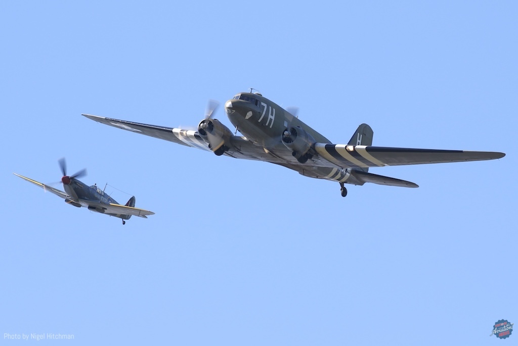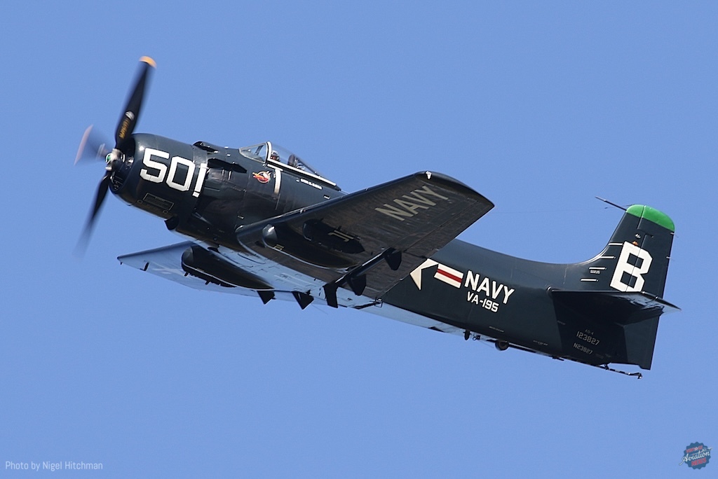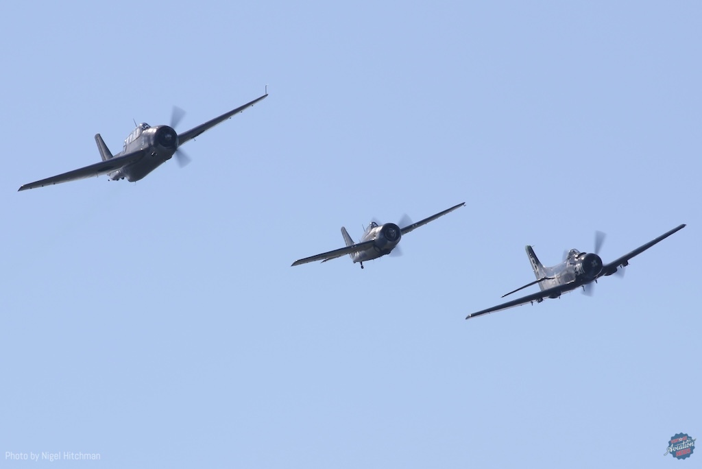 The show started each day with some four ship T-6 formation flypasts and then WWII trainers with an Aeronca L-16, Stearman and SNJ-2, also joined on Sunday by a Taylorcraft L-2. Saturday the US Navy aircraft were next, including a missing man formation flypast with the two TBM Avengers, Grumman FM-2 Widcat, Vought F4U Corsair, and Douglas Skyraider, a great sight to see. Sunday these formed the finale but sadly the Corsair became unserviceable after taxiing out and didn’t fly. The European theatre of operations was showcased with the Spitfire IX MJ730 N730MJ, Messerschmitt Bf 109G N109GY, and Yakolev Yak-3M N42YK White 7 each doing individual flypasts and tail chases, then finishing with a three ship formation flypast. It was especially great to see the BD605 powered Bf 109 flying and being well demonstrated by Mike Spalding, being such a rarity on the airshow circuit worldwide.
