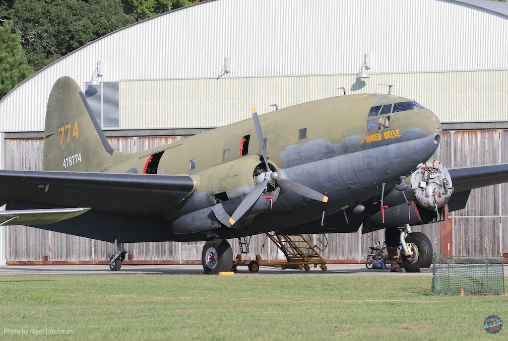 A new addition outside is the Curtiss C-46 Commando N74178 The Tinker Belle which flew into the museum in July 2023, but is currently awaiting an engine, it was the only flying Curtiss C-46 in a museum collection, the few other flying Curtiss C-46s being operated by Everts in Alaska and Buffalo Airways in northern Canada. The Flug Werk FW190A powered by a Shvetsov Ash-82 engine (Russian development of licence built Wright R-1820) looks great, but is currently grounded with landing gear issues. The de Havilland Mosquito FB.26 KA114 was the first Avspecs restoration and really the project that made all the other Mosquito restorations possible, even though Glynn Powell was already underway with NZ2308. After an 8 year rebuild KA114 flew in 2012, coming to Virginia Beach in 2013. It flew regularly until 2022 and has recently been undergoing a deep inspection and engine overhaul, almost ready to fly again for the airshow, but not quite.