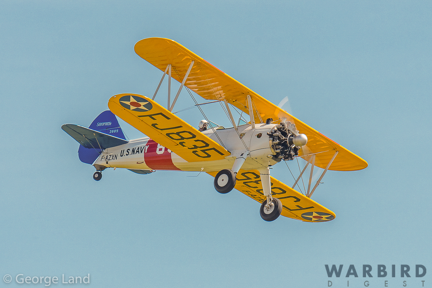 Boeing Stearman N2S-3 Kaydet, F-AZXN, Bu.3885, US Navy FJ835 – (pilot – Jean-Michel Dardaud). (photo by George Land)