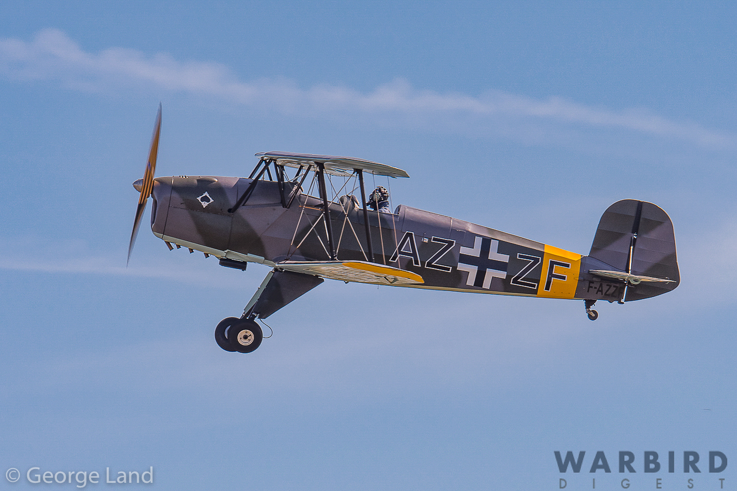 Bücker (CASA) Bü 131 Jungmann, F-AZZF, Luftwaffe AZ+JF flown by Francois Devin. (photo by George Land)