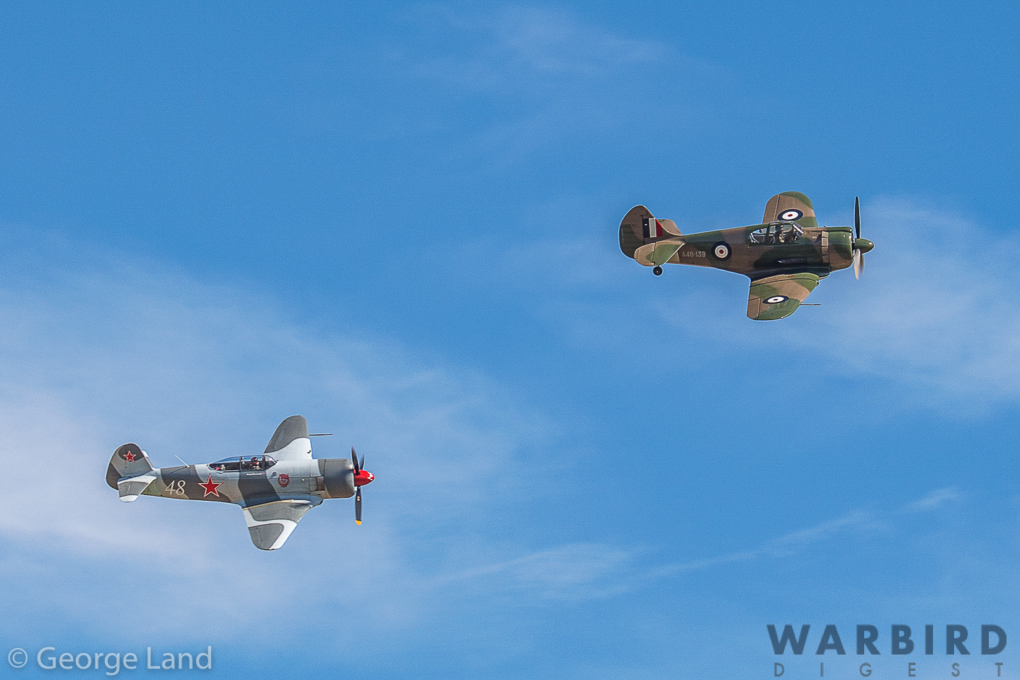 CAC CA-13 Boomerang and Yakovlev Yak-3U, F-AZZK, ‘White 48’ (pilot Rick Van Der Graaf). (photo by George Land)