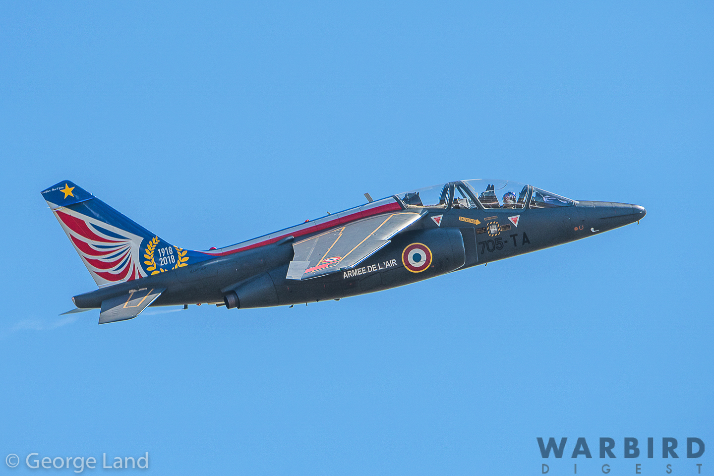 Dassault Dornier Alpha Jet E, Armee de L’Air, E-42, 705-TA, Armee de L’air, Fighter Aviation School, Tours, Alphajet Solo Display Team, 1918-2018 Annisversary Special Markings (pilot Jean Tanguy). (photo by George Land)