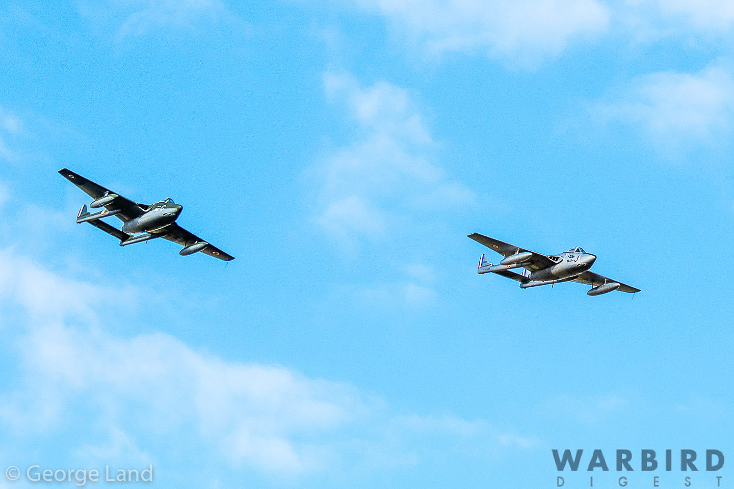 de Havilland (FFA) Vampire DH100 FB.Mk6, F-AZIK, GDU, ex Swiss AF J1191, (Jean-Michel Dardaud) and de Havilland (FFA) Vampire DH.100 FB.Mk6, F-AZOO, J-DU, ex Swiss AF J1127, (Patrice Fiocconi). (photo by George Land)