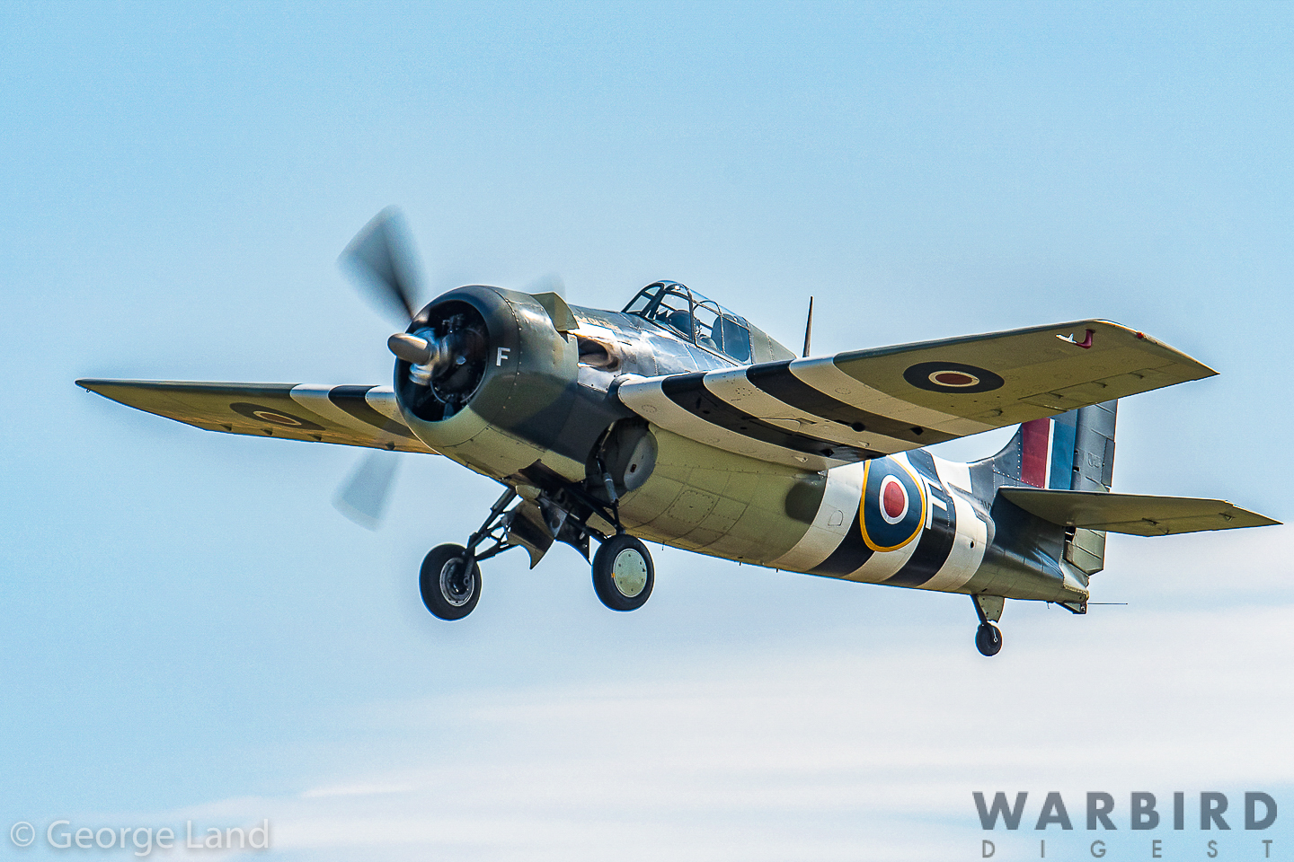 Grumman FM-2 Wildcat, G-RUMW, Bu.86711 marked as JV579 Fleet Air Arm (pilot Andy Burston). (photo by George Land)