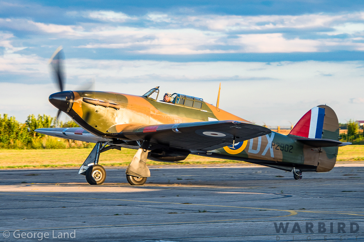 Hawker Hurricane Mk.lla P3351/DR393 (F-AZXR) (Pilot Bruno Ducreux) on flight line. (photo by George Land)