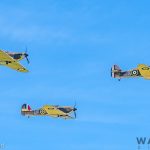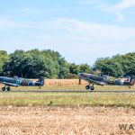 The next two segments focused on early WWII like the Battle of France and Battle of Britain. These featured fighters such as the Morane 406S, Hispano Buchón (representing the Messerschmitt Bf 109), Hawker Hurricane and Supermarine Spitfire. One rare moment came with the formation of three Hurricanes in the skies of France together, a sight probably not seen since WWII. All credit must go to the organizers who changed this segment from Saturday to Sunday. On Saturday the Buchóns and Hurricanes did their own tail chases, but on Sunday the tail chases featured two pairs consisting of and Buchón and Hurricane in each.