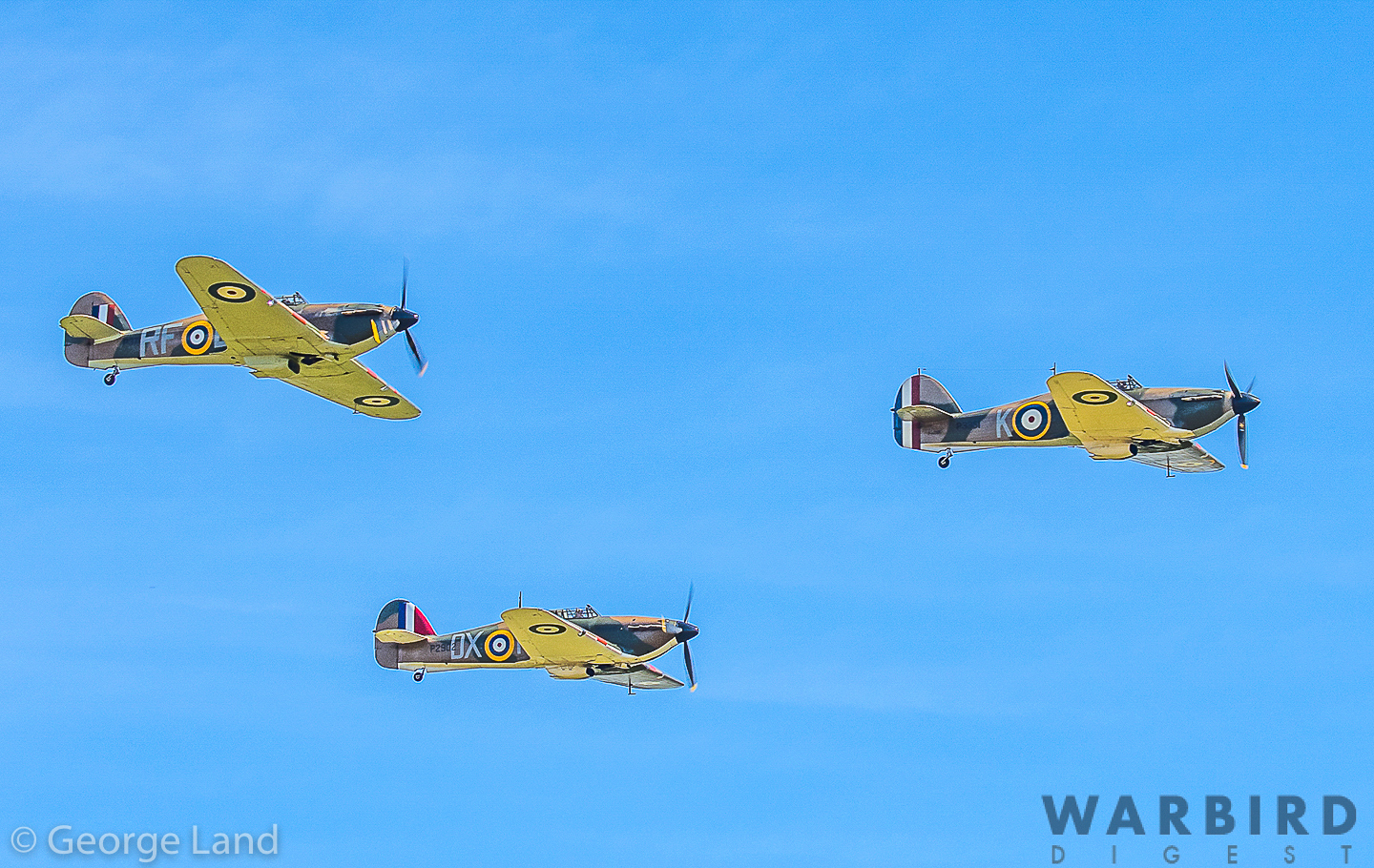 Hawker Hurricanes Mk.l (Pilot Alex Smee), Mk.ll (Pilot Bruno Ducreux), Mk.llX (pilot Dave Harvey). (photo by George Land)