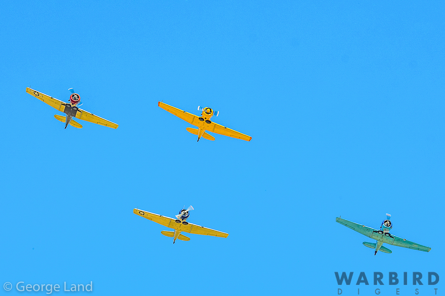 . (photo by George Land)North American T-6 flight, F-AZEF (Jean-Pierre Lafille), F-AZBE (Franck Salis), F-AZCV (Jacques Harbert), F-AZTL (Christian Lucquet)