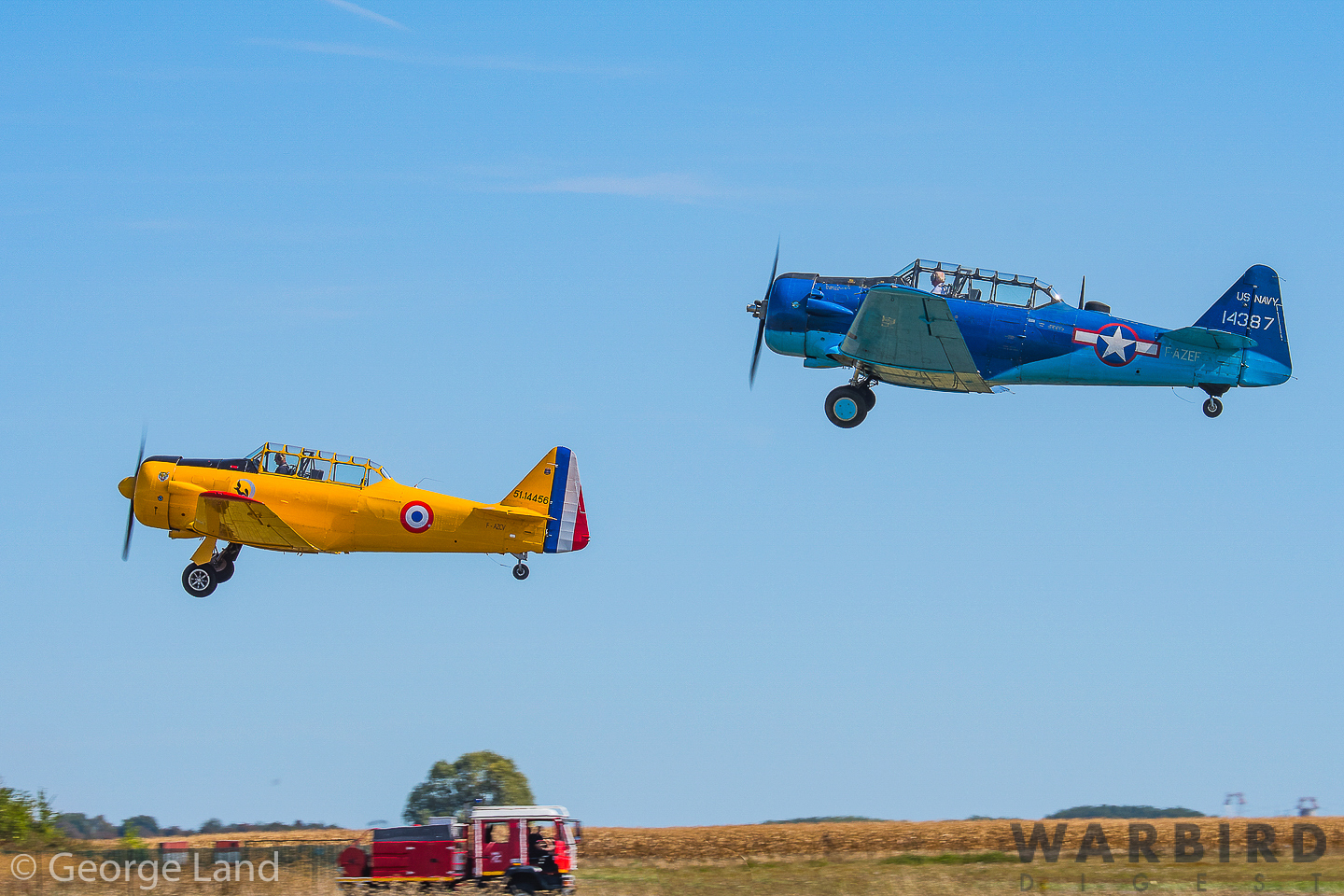 T-6 F-AZCV(Jacques Harbert) & F-AZEF(Jean-Pierre Lafille). (photo by George Land)