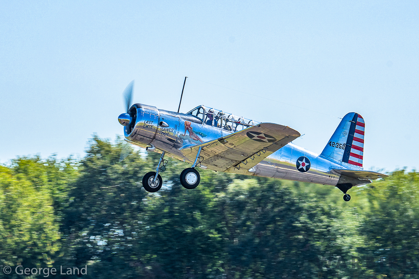 Vultee BT-13A Valiant (Vibrator), N93, marked as 43-452, ‘Last Date/Bawls Out’, but actually is 43-1352, (pilot – Thierry Kubiak). (photo by George Land)