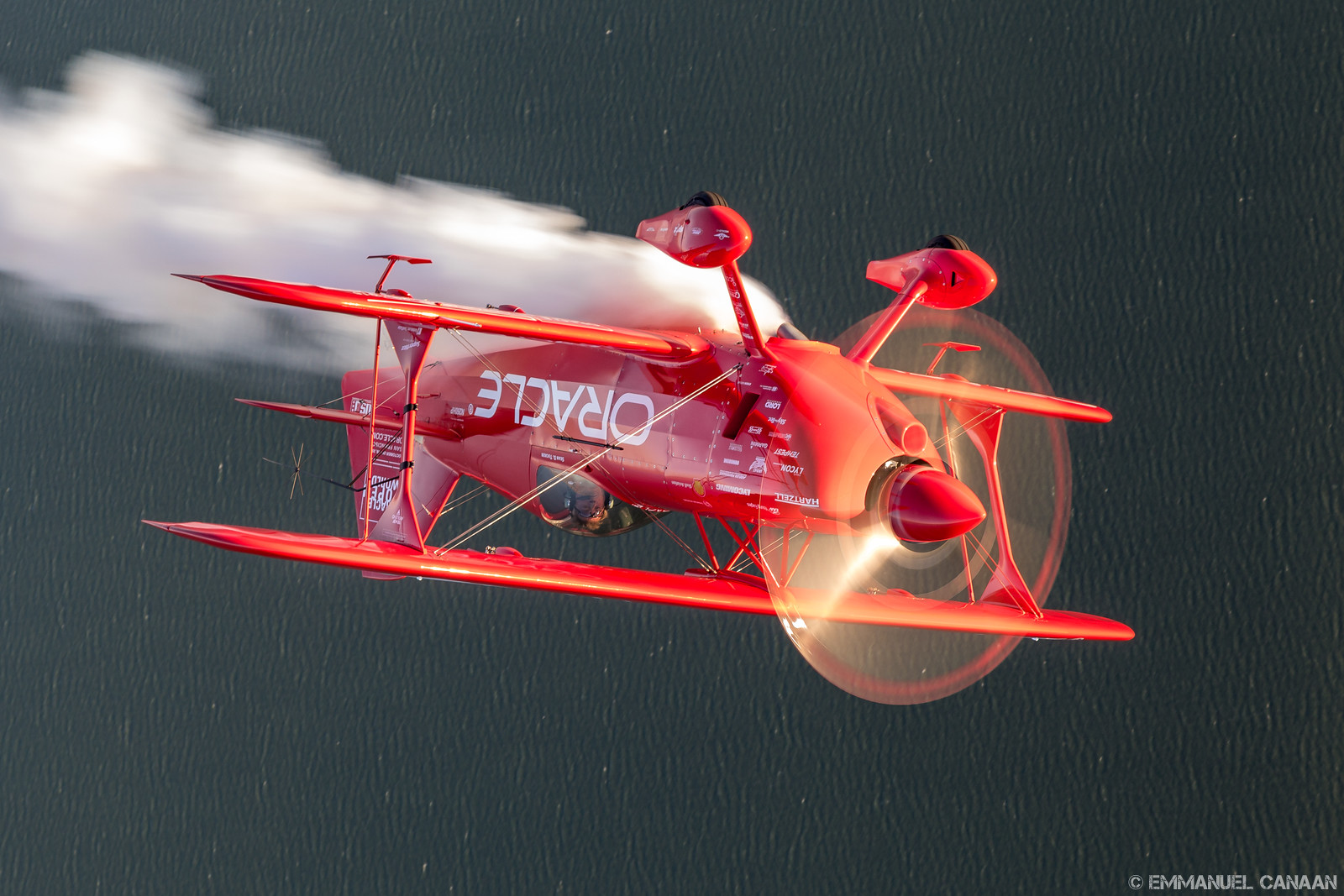 We at WarbirdsNews are very grateful to Emmanuel Canaan for both providing us with his magnificent photographs and commentary from his time aloft with Sean D. Tucker and the Blue Angels Flight Demonstration Team. We hope to feature his superlative work again in the future! Please be sure to visit Emmanuel Canaan’s website HERE where prints are available from his flight with the Blues and Sean D. Tucker, as well as other fascinating subjects.