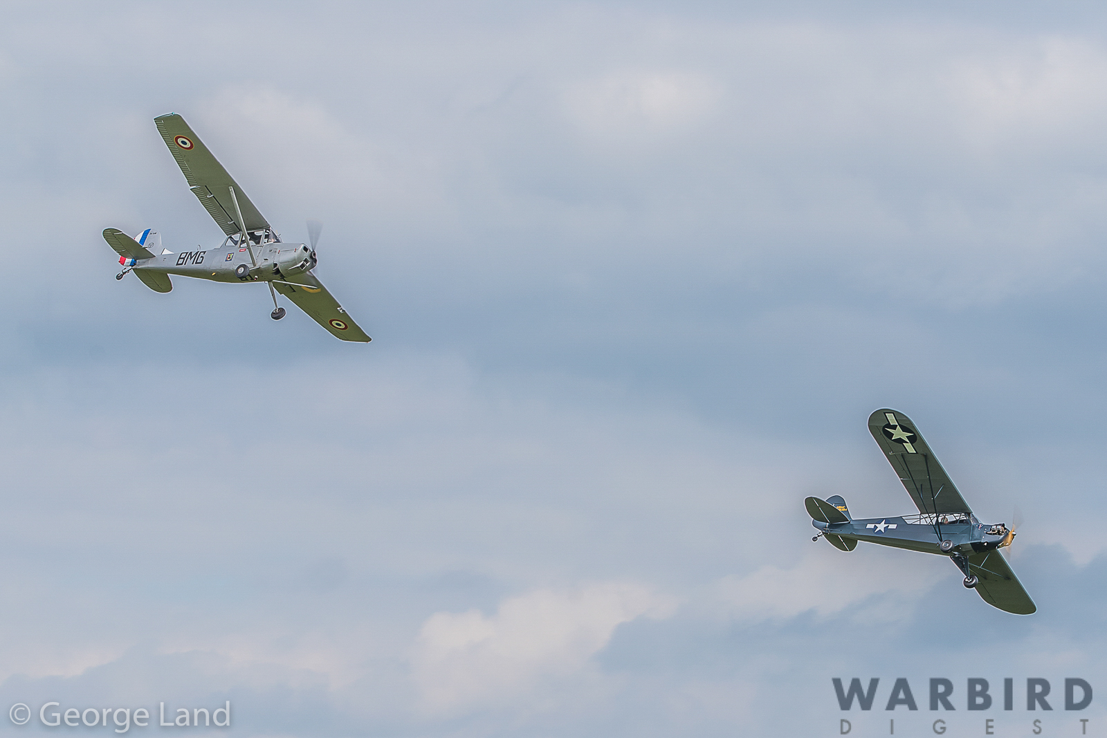 Cessna 305C Birddog as French Army BMG-25-541 G-JDOG and Piper J3C-65 Cub G-BHVV as L-4J Grasshopper USMC-42-38384. (photo by George Land)