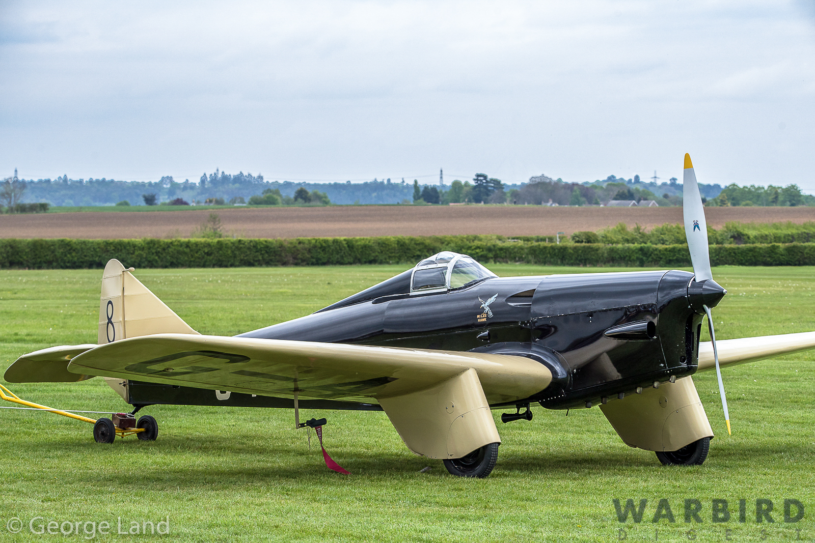Percival Mew Gull G-AEXF, ex-Alex Henshaw, racing record 1937 Folkestone Trophy 210mph, 1938 Kings Cup Trophy 236mph, 1939 London-Cape Town-London. (photo by George Land)